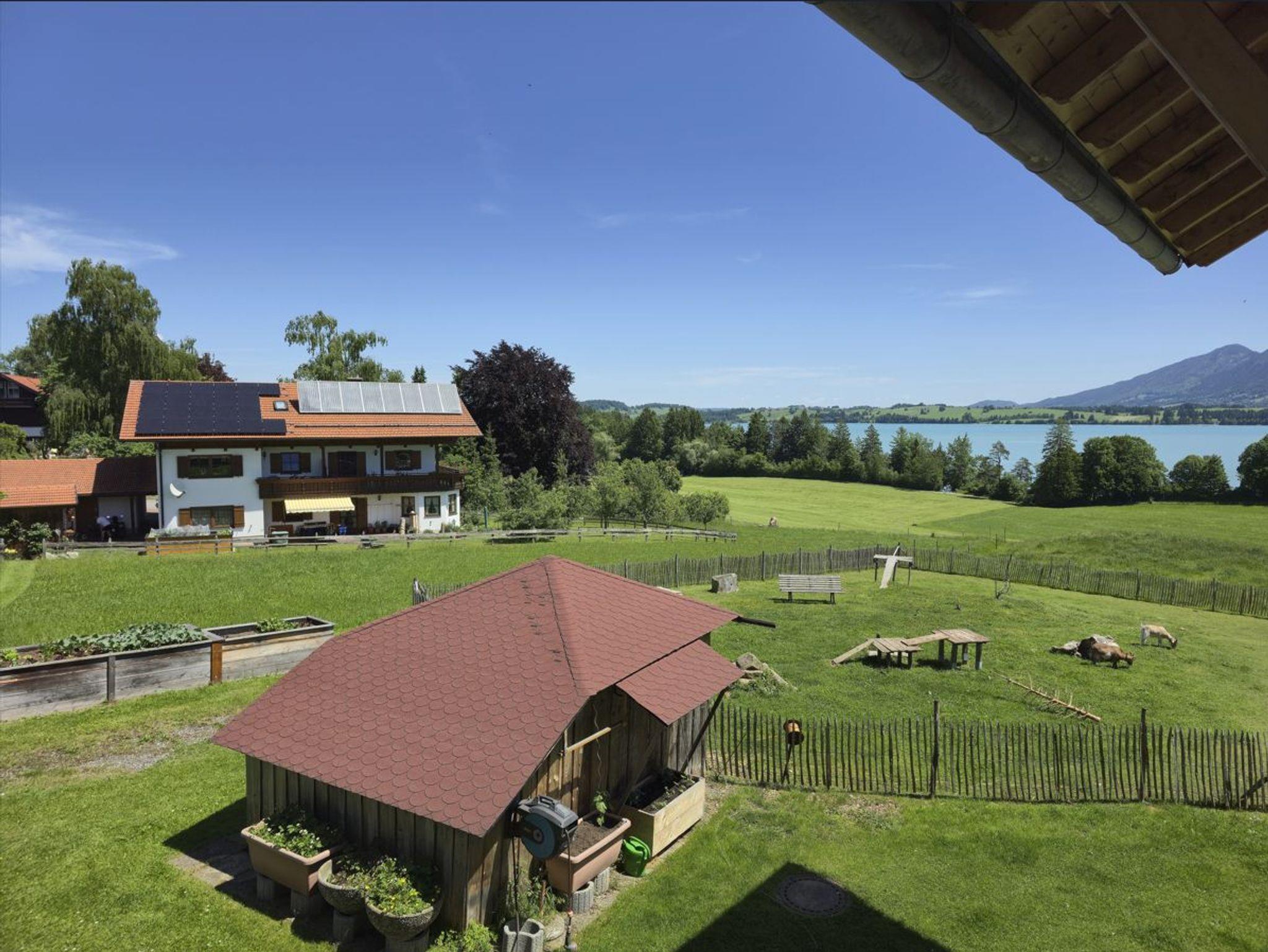 Unser hundefreundliche Ferienhof hat insgesamt zwei Appartements und zwei Ferienwohnungen und liegt erhöht direkt am Forggensee. Die kurze Entfernung zum Badeplatz von Osterreinen lädt dich ein, um das glasklare Wasser mit der Aussicht auf die Allgäuer Alpen und das bekannte „Schloss Neuschwanstein“ zu genießen. Durch den eingezäunten Garten kann sich dein Vierbeiner auch hier vor Ort richtig austoben!