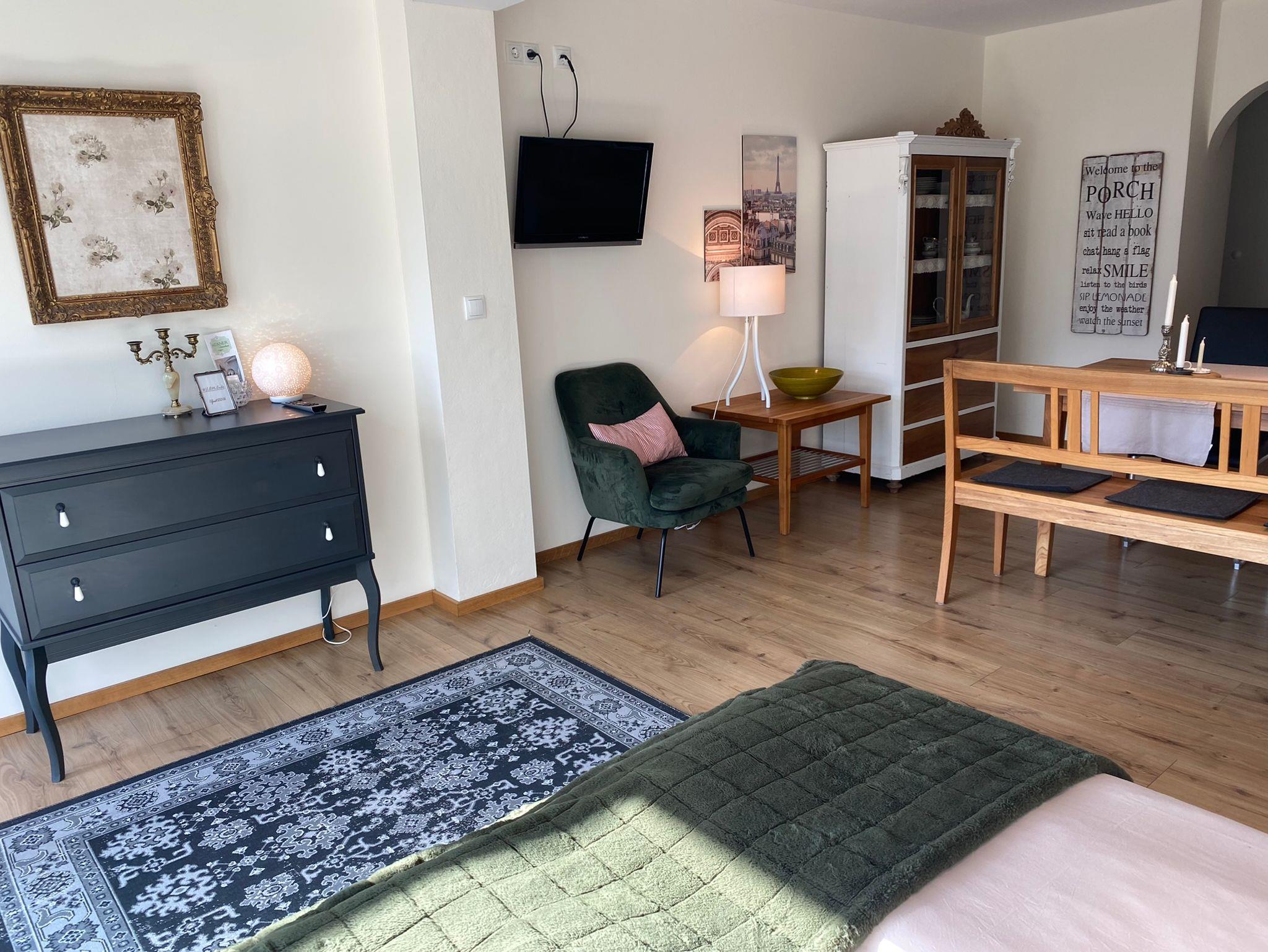 Im liebevoll eingerichteten Einzimmer-Appartement finden auf 35 qm bis zu zwei Gäste Platz.