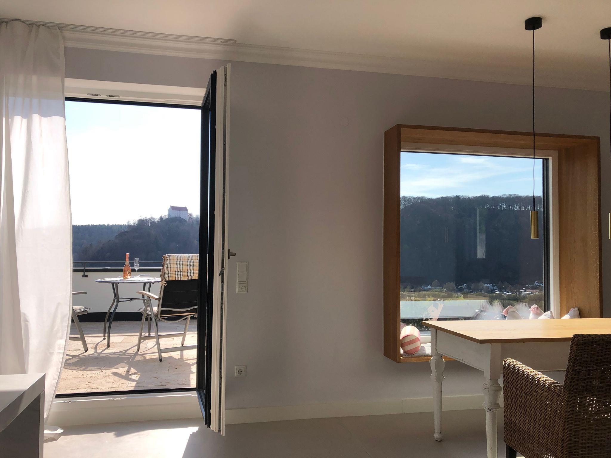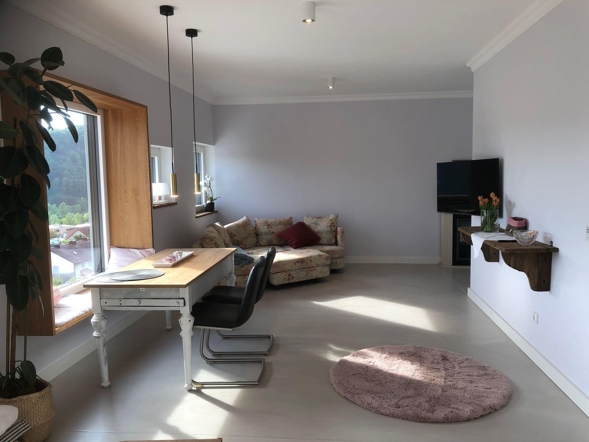 Eine Ferienwohnung mit herrlichen Blick auf Riedenburg. Die Wohnung bietet ein wunderschönes Ambiente: fugenloser Boden, hohe Räume, Natursteinfliesen und ausgewähltes Mobiliar. Ein geräumiger Wohn-und Essraum bildet das Herzstück dieser wunderbaren Ferienwohnung.