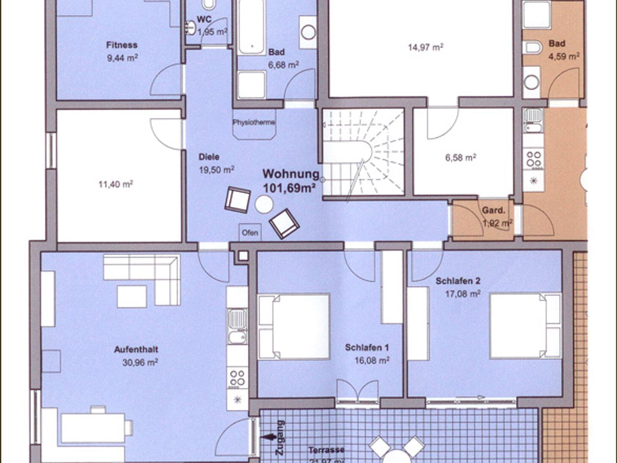 2 Schlafzimmer, bei Buchung von insgesamt 2 Personen und Benutzung beider Schlafzimmer beträgt der Aufpreis 4,— Euro/pro Nacht