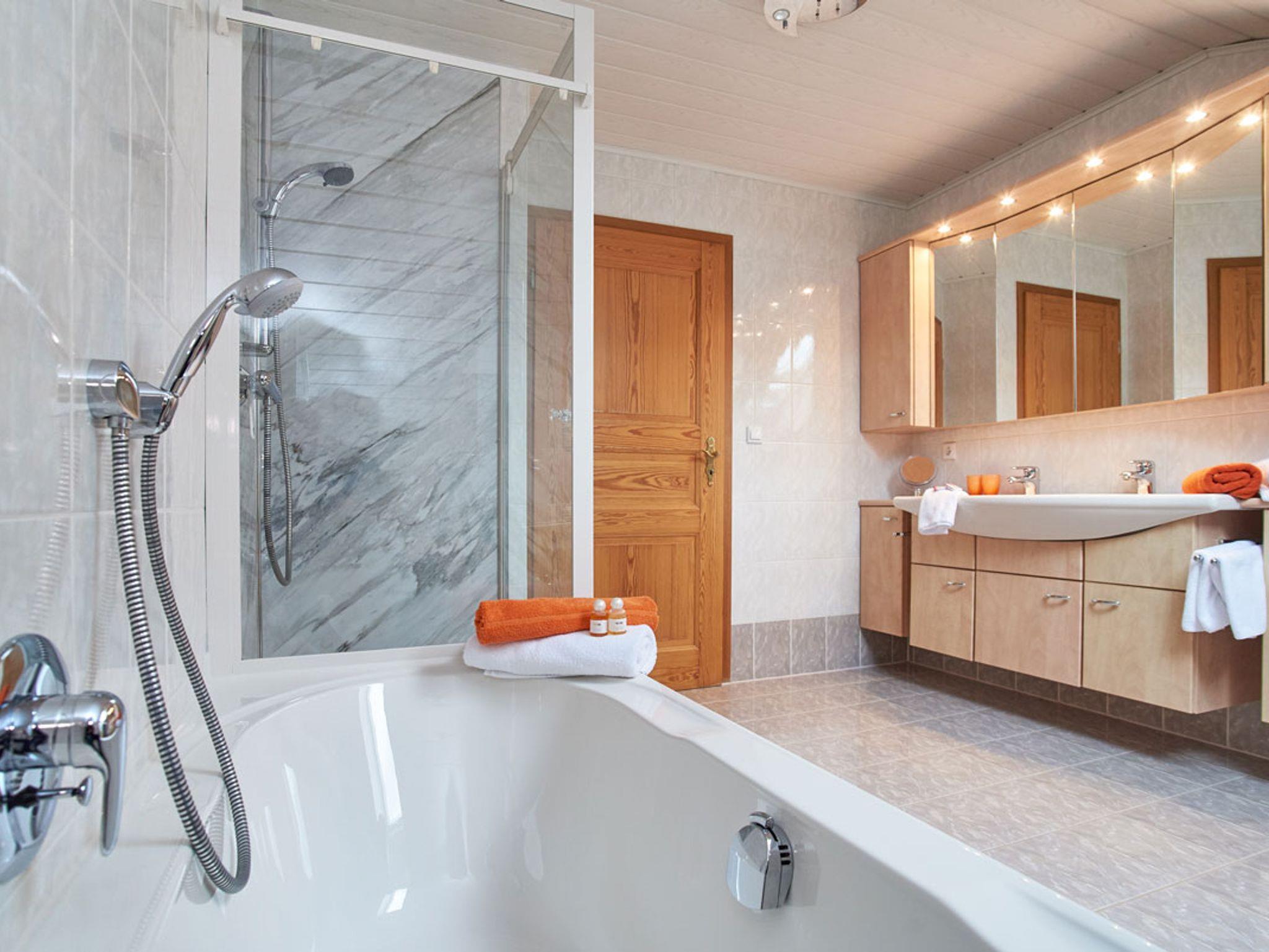 Geschmackvoll eingerichtete Ferienwohnung im Obergeschoss mit Wohnzimmer, Küche mit Essecke, 2 Schlafzimmer, Bad mit Dusche, Badewanne und WC. Ein großer Balkon und der schöne Garten laden zum Genießen ein.