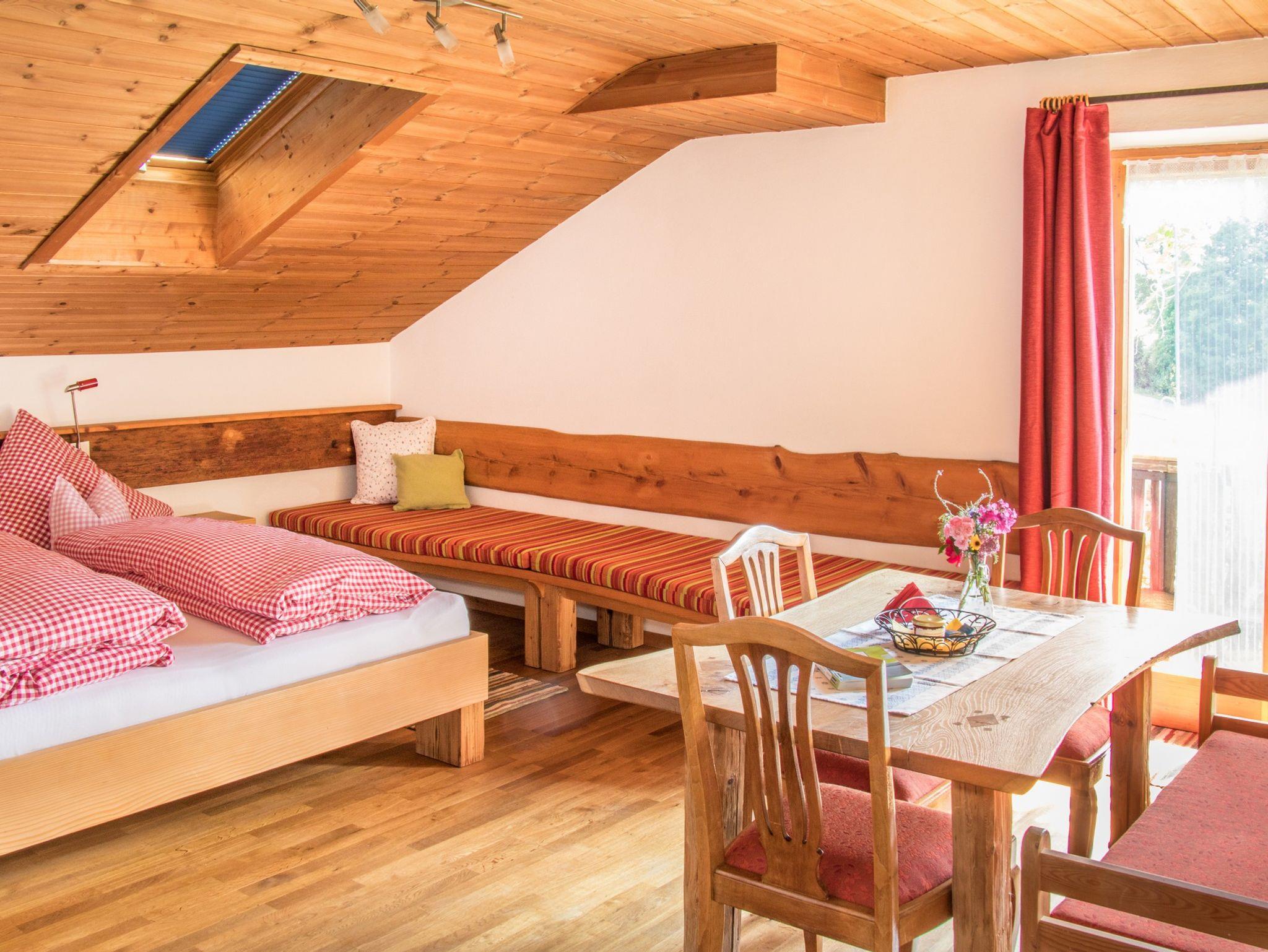 Die Wohlfühl-Wohnung Peter ist geeignet für 2 Erwachsene und 2 Kinder. Die Ferienwohnung Peter ist in einer einzigartigen ökologischer Holz-Lehm-Bauweise errichtet. Die geölten Holzfußböden laden zum Barfußlaufen ein. Die Wohnung mit einer modernen, offenen Innenarchitektur verfügt über eine Schlafgalerie im Wohnbereich die nur für Kinder geeignet ist, welche einen tollen Ausblick liefert. Die großzügige Terrasse der Wohnung läßt das Leben im Sommer nach Draußen verlagern. Im Winter wärmt ein Kaminofen die Wohnung, die mit Vollholzmöbeln ausgestattet ist, welche zum Teil aus eigener Produktion stammen.