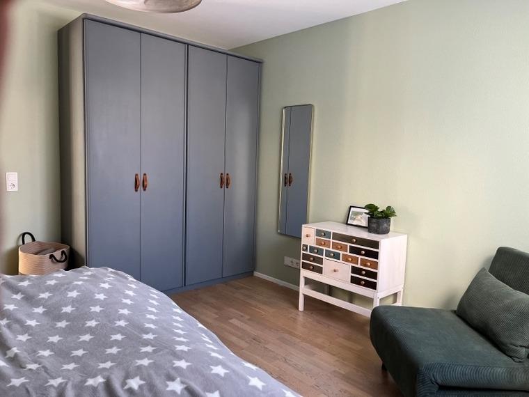 Im Schlafzimmer können bis zu drei Betten genutzt werden. Ein großes, gemütliches Doppelbett (180cm x 200 cm) und bei Bedarf kann zusätzlich ein Schlafsessel mit separater Matratze als komfortables Zustellbett (80cm x 190cm) genutzt werden. Alternativ zum Zustellbett kann auch ein geschlossenes Kinderbett gestellt werden. Ein großer Kleiderschrank bietet genügend Stauraum für Kleidung und Koffer.