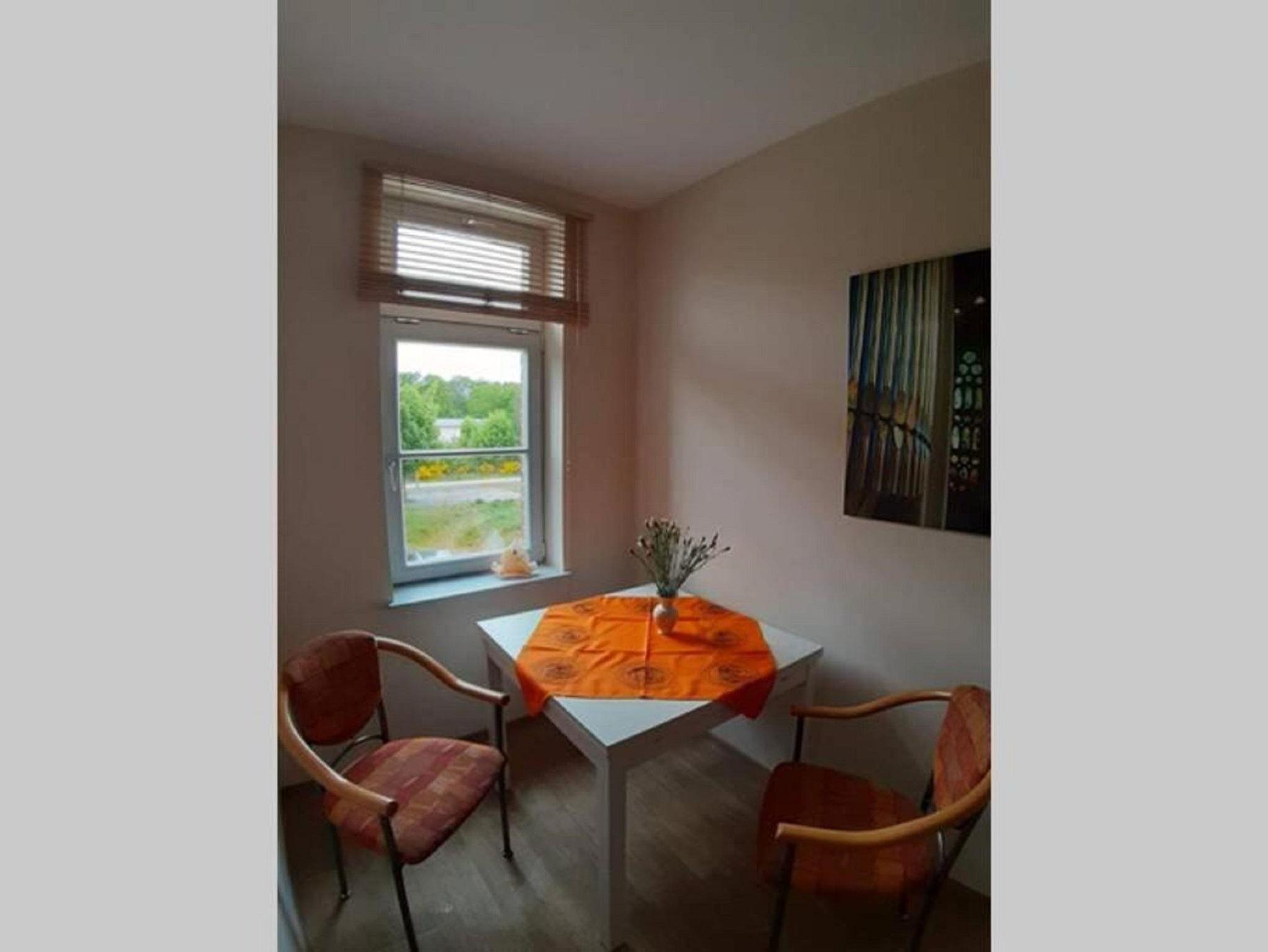 Die Ferienwohnung besteht aus zwei Zimmern, einem Flur und einem Bad. Das Bad ist mit einer Dusche, einem WC und einem Waschtisch ausgestattet. Im Flur ist eine Miniküche mit Spüle und Cerankochplatte. Weiterhin sind Geschirr und Töpfe vorhanden. Das Schlafzimmer ist mit zwei Betten und einem TV ausgestattet. In einem weiteren Raum befindet sich ein Kühlschrank mit ein paar Getränkten die gern genutzt werden können. Die Bezahlung erfolgt als Kasse des Vertrauens. Außerdem ist eine Kaffemaschiene und ein Wasserkocher vorhanden. Der Kaffee- und Teevorrat kann kostenlos aufgebraucht werden. Auch ein Minibackofen und ein Toaster sind vorhanden.