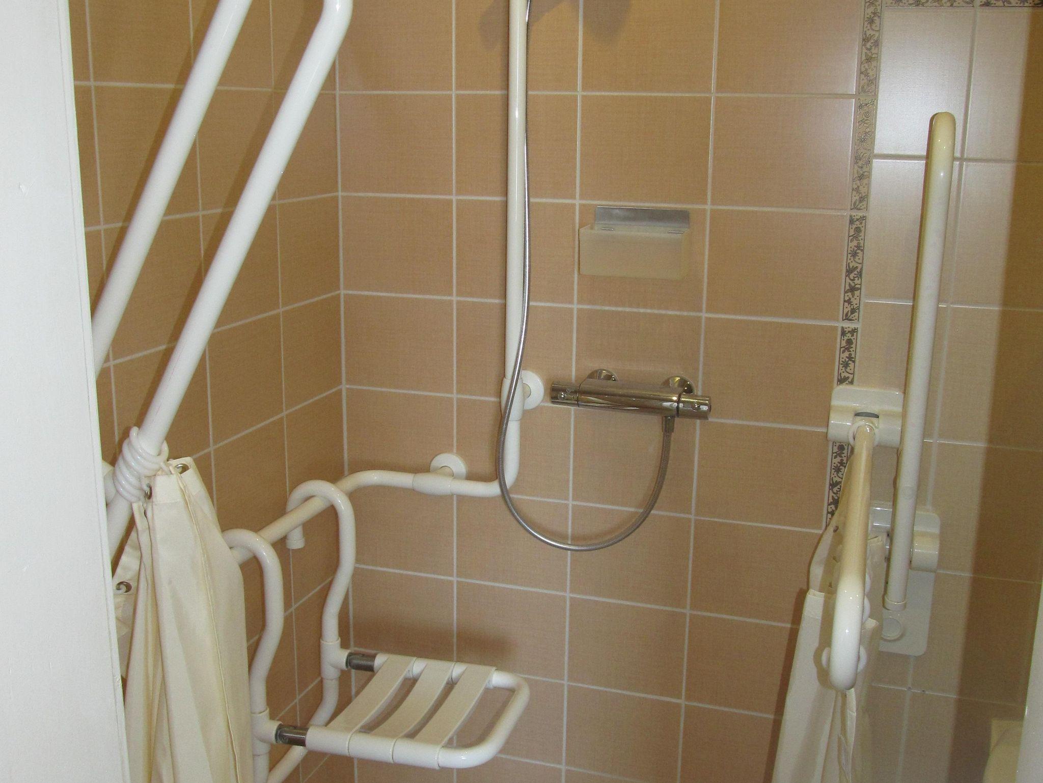 Im Sanitärbereich befindetsich eine ebenerdige Dusche sowie ein WC.