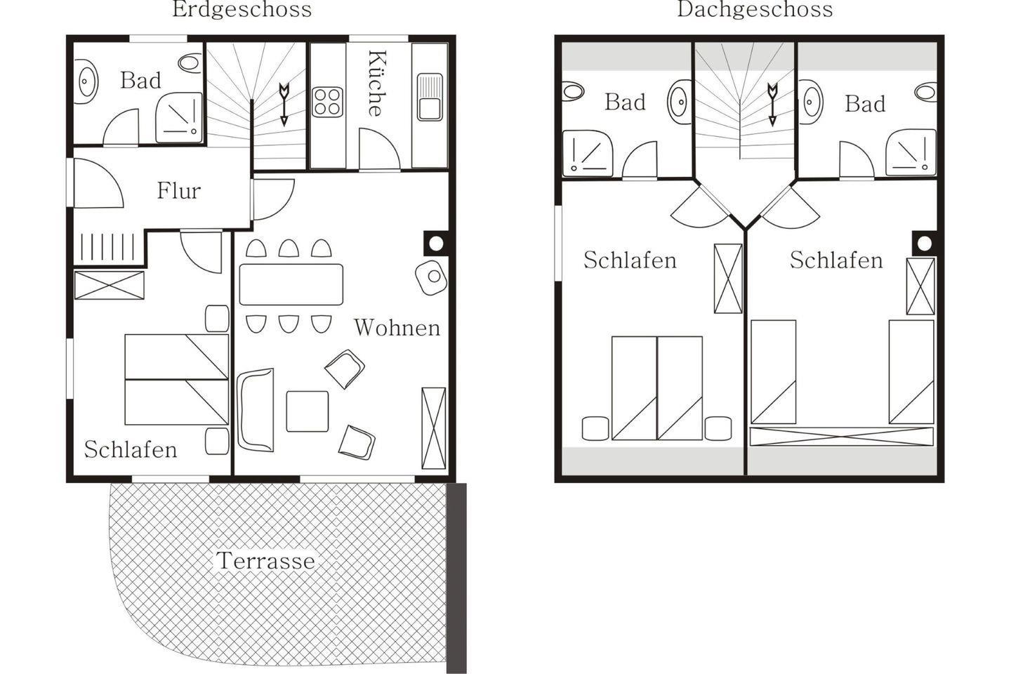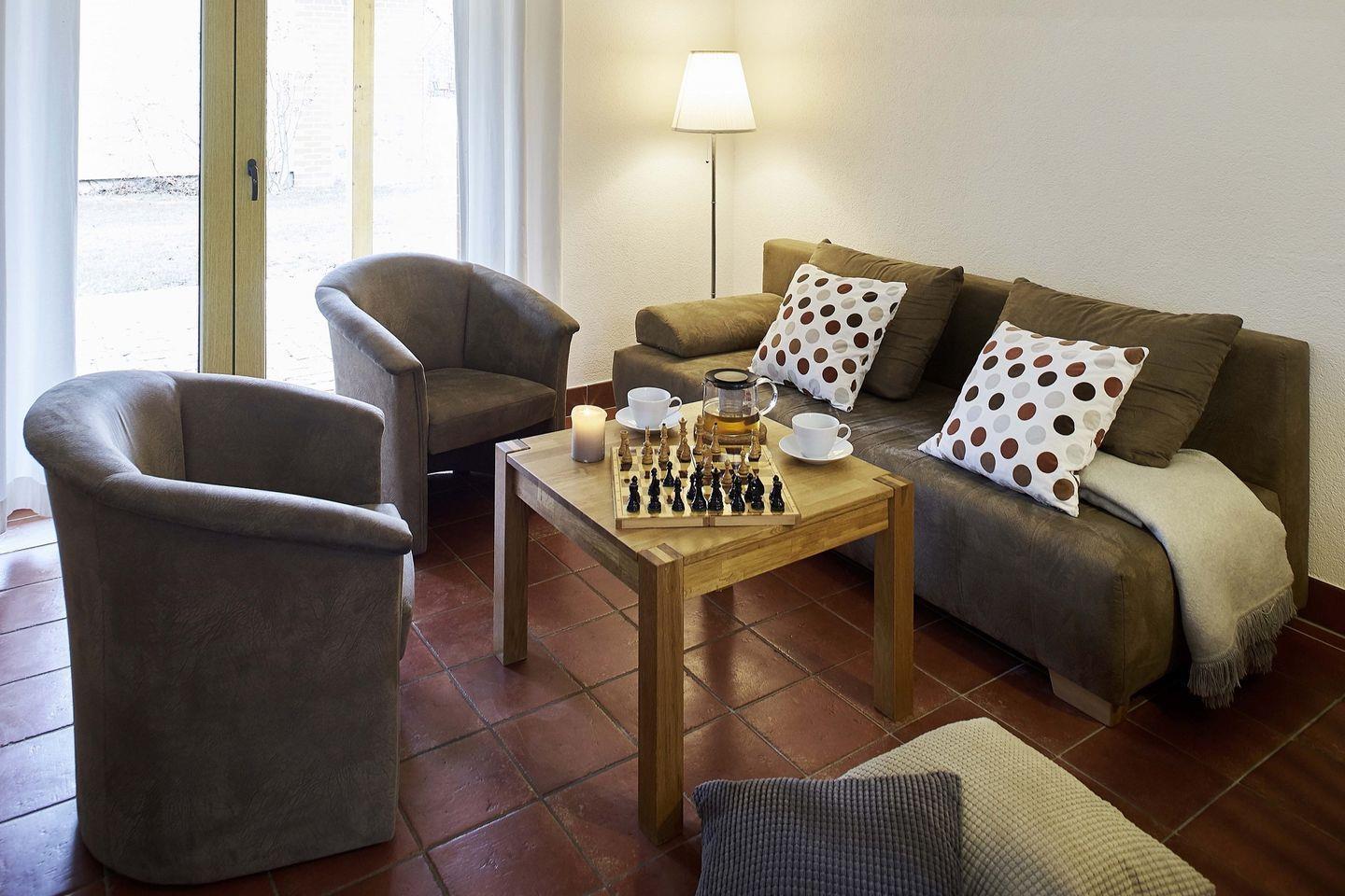 Das Fliederhaus ist großzügig konzipiert. Auf einer Wohnfläche von 92 m² auf 2 Ebenen bietet die Doppelhaushälfte Platz für 6 (+2) Personen.