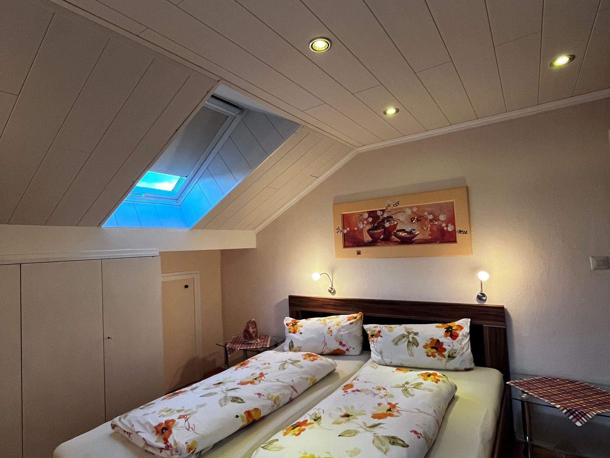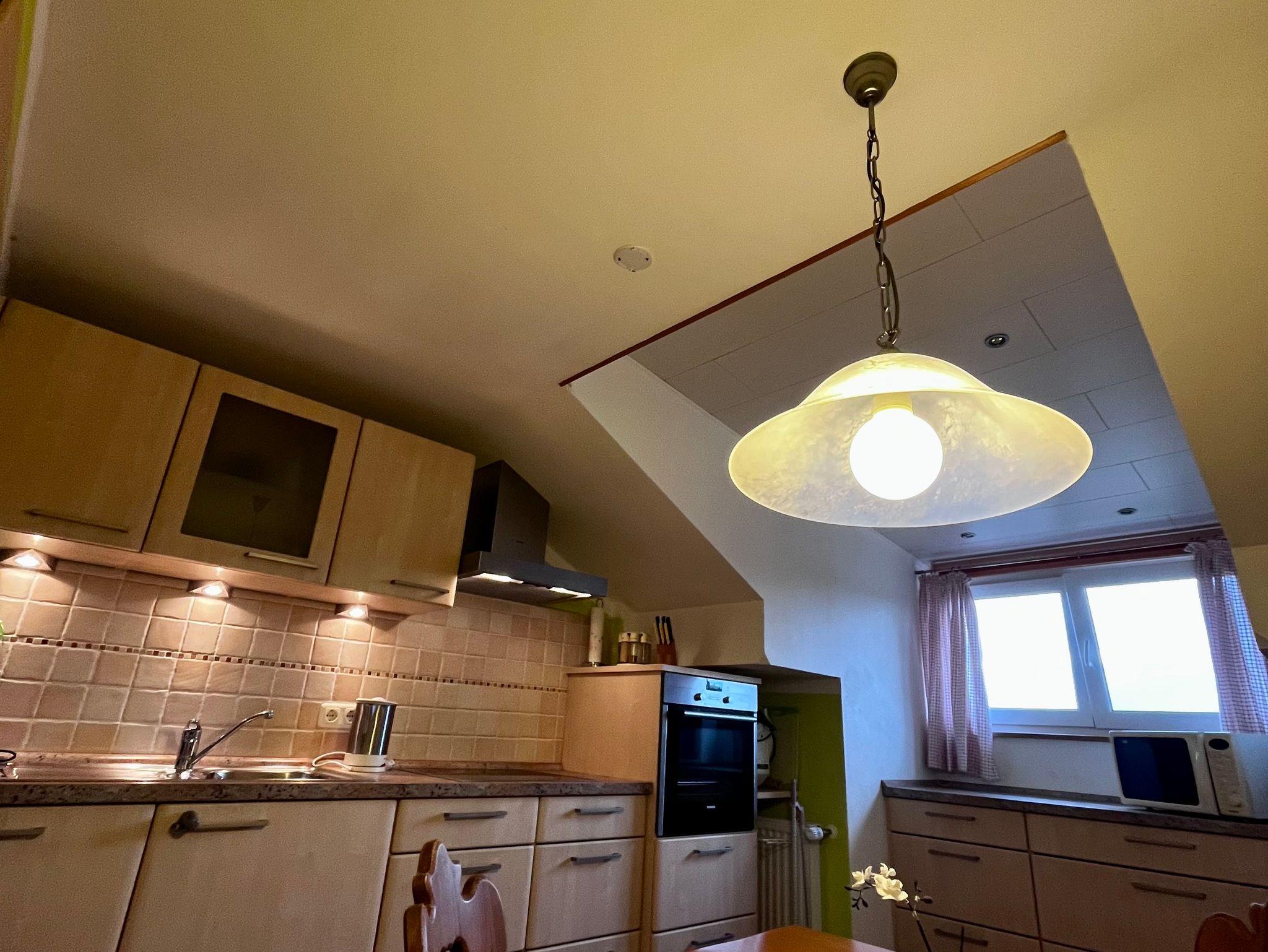 Ferienwohnung im DG, 85 qm, Balkon nach Osten und Westen (Bergblickvom Westbalkon), komplett ausgestattete Wohnküche, Geschirrspüler, Mikrowelle, zwei Schlafzimmer, eines mit Balkon. Bad/Dusche und seperates WC, Bettwäsche und Handtücher werden gestellt. Fön, Radio, SAT/TV und Wlan sind vorhanden.