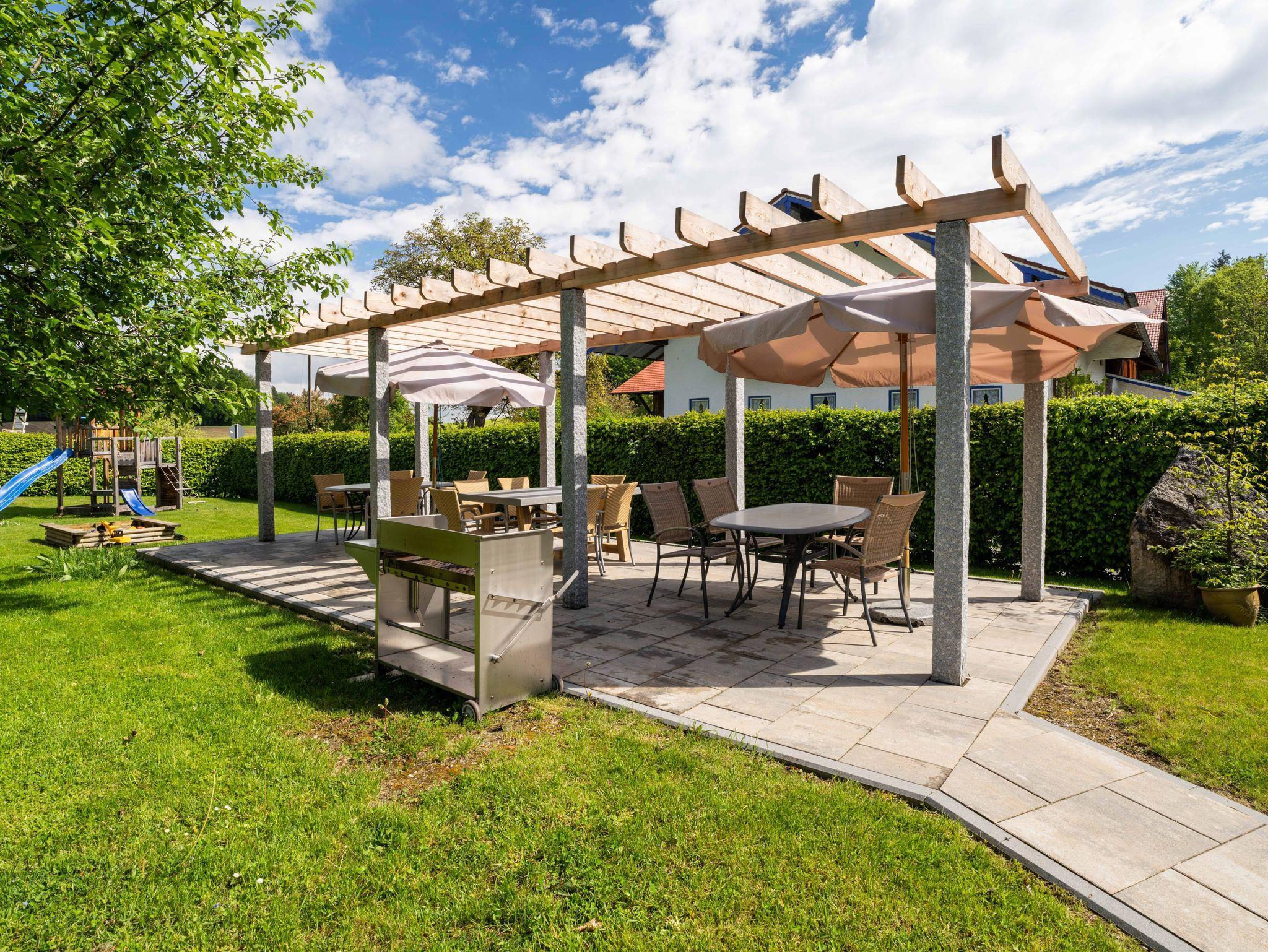 Während sich die Kinder auf dem Trampolin, der Schaukel oder im Sandkasten austoben, genießen Eltern entspannte Stunden unter freiem Himmel – umgeben von der traumhaften Naturkulisse des Chiemgaus.