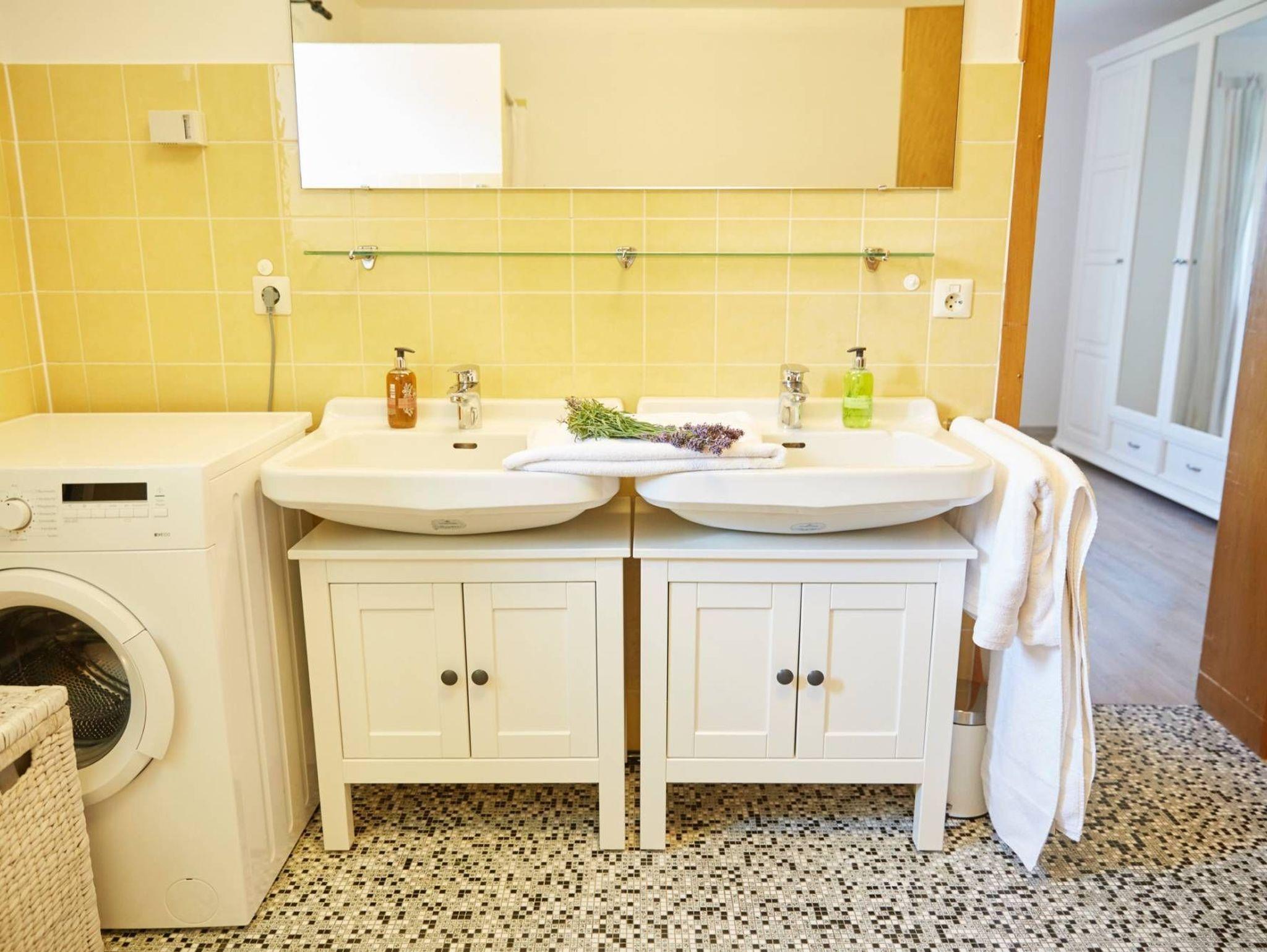 Das gemütlich eingerichtete Feriendomizil wurde mit viel Liebe zum Detail geplant und gestaltet. Viel Platz ist hier garantiert! Das Herzstück des Hauses bildet das lichtdurchflutete Wohnzimmer mit angrenzendem Essbereich, der zu geselligen Stunden einlädt. Genießen Sie den Ausblick vom Sofa des Wohnzimmers durch das große Panoramafenster über den See auf die Bergkette. Die an das Esszimmer angrenzende Küche bietet allen Komfort, den Sie für Ihren Urlaub benötigen. Im SeenParadies steht eine Vielzahl von Essbereichen zur Verfügung: Ob Terrasse, überdachte Terrasse mit großem Esstisch beim Hauseingang, das große Esszimmer oder der kleine Esstisch in der separaten Küche, hier ist Gemütlichkeit und Geselligkeit angesagt. Sie möchten auf unterschiedlichen Etagen nächtigen? Kein Problem, denn auf jeder Etage befinden sich zwei Schlafzimmer. Das Erdgeschoss verfügt über ein Schlafzimmer mit Doppelbett und ein weiteres Schlafzimmer, welches mit zwei Einzelbetten und eigenem Waschbecken ausgestattet ist. Vervollständigt wird das Erdgeschoss mit einem großen Badezimmer, in welchem Sie Badewanne, Dusche, Doppelwaschbecken und Waschmaschine vorfinden und einem separaten WC. Im ersten Stockwerk finden Sie zwei weitere Schlafzimmer mit Doppelbett. Ergänzt wird diese Etage mit einem kleinen Badezimmer mit niedriger Dusche und einer kleinen Küche.