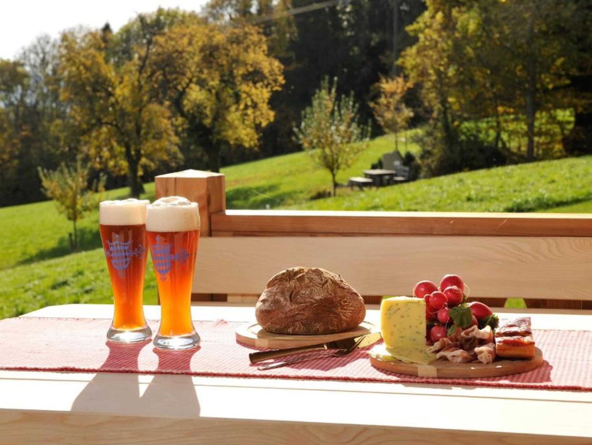 Freistehendes Chalet mit Terrasse, komplett ausgestattet. Panoramablick auf die Alpen. 5 Gehminuten zum Aussichtsturm. Wanderwege direkt vor dem Haus.