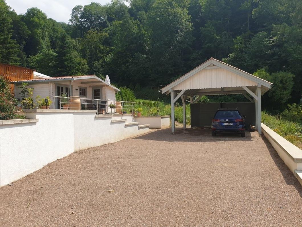 Unter dem Aspekt, das Sie sich wohl fühlen sollen, wurde auch in die Aussenanlage gestaltet. Owohl sich das Grundstück in starker Hanglage befindet, erwartet Sie ein grosszügiger Parkplatz.. Dort finden sogar Wohnmobile und Transporter Platz. Vom Parkplatz aus erreichen Sie stufenlos das Haus.