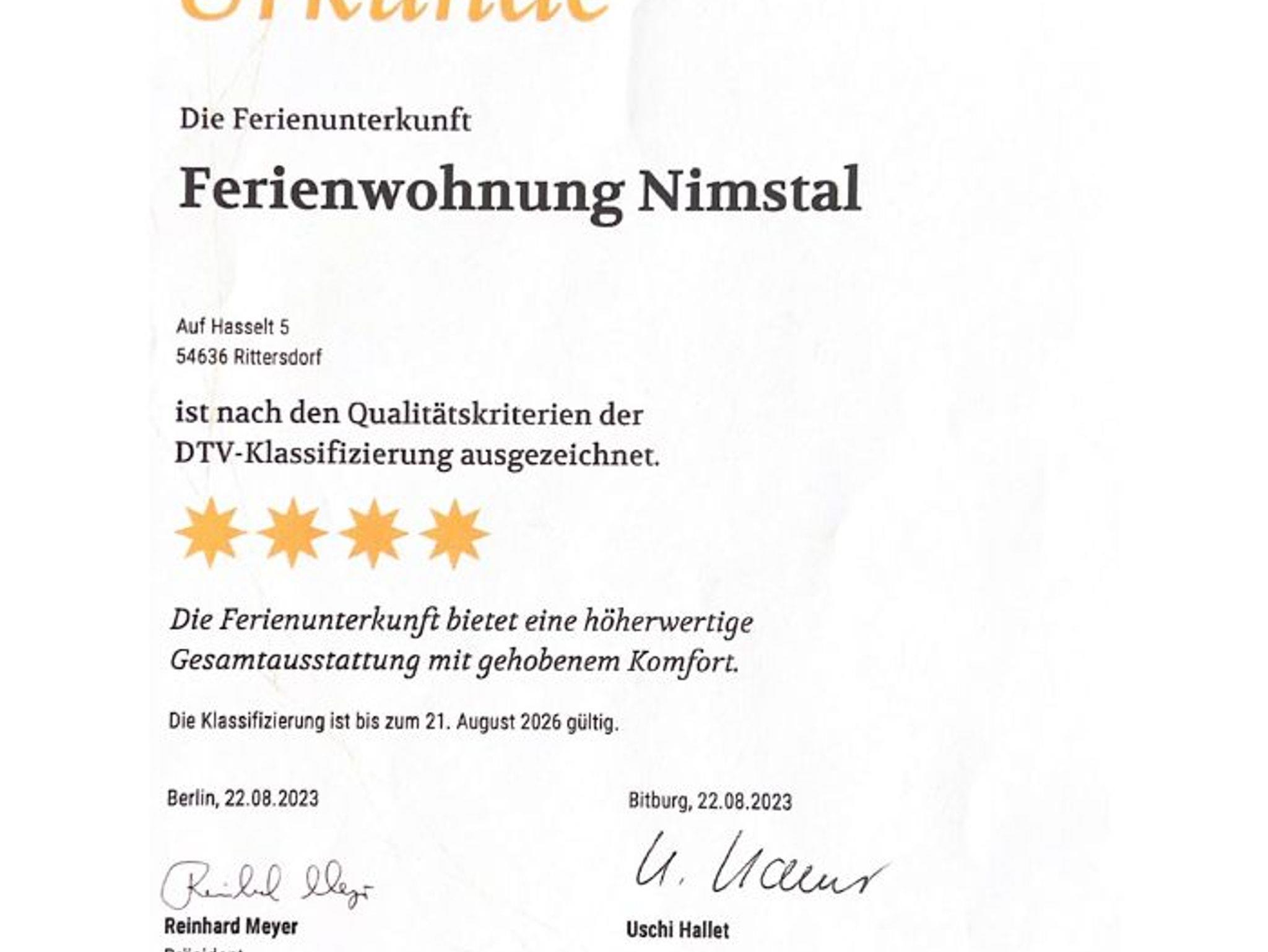 Rittersdorf liegt im Herzen des Naturparks Südeifel. Von hier aus können Sie Ihre Unternehmungen starten. Ob als Wanderfreund oder Radfahrer. Der Fahrrad- und Wanderweg startet direkt vor der Haustüre. Sie haben einen wunderschönen Blick ins Nimstal und können die Natur genießen. Unsere sonnige Terasse lädt Sie zum Verweilen mit Blick in die Natur ein. Viele Ausflugsziele können Sie von Rittersdorf aus bequem erreichen. Beispielsweise den Stausee Bitburg, den Eifelpark Wild und Freizeitpark Gondorf, die Irreler Wasserfälle sowie den Dinosaurierpark und das Naturparkzentrum Teufelsschlucht in Ernzen, Trier- die älteste Stadt Deutschlands, das malerische Echternach (Luxemburg) das schöne Städtchen Bernkastel an der Mosel, die Maare bei Daun und vieles mehr. Wunderschöne Landschaften, viel Natur, ein gutes Freizeitangebot und tolle Sehenswürdigkeiten - das ist Urlaub in der Südeifel!