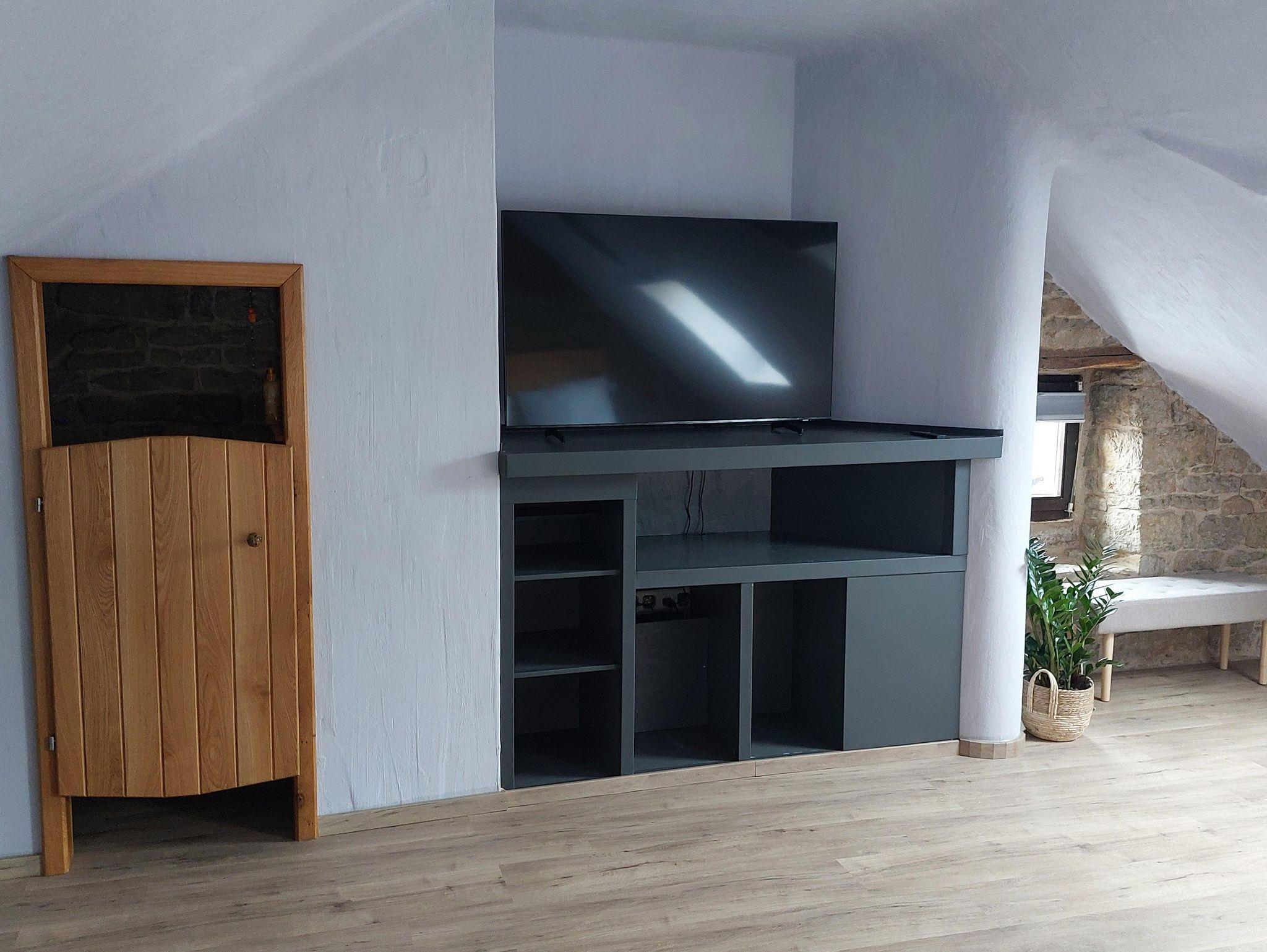 Über originalgetreue Holztreppen erreicht man auf 4 Etagen 2 Bäder, ein Spiel- und Leseraum und ein Wohn-/Esszimmer. Im Spiel- und Lesezimmer steht den Gästen eine Auswahl an Büchern, Informationsmaterial und Gesellschaftsspiele zur Verfügung. Die moderne und individuelle Einrichtung schafft eine gemütliche Wohlfühlatmosphäre. Niedrige Decken, schiefe Wände und Fußböden und steile Treppen machen den einmaligen Charakter des Eifelhauses aus.