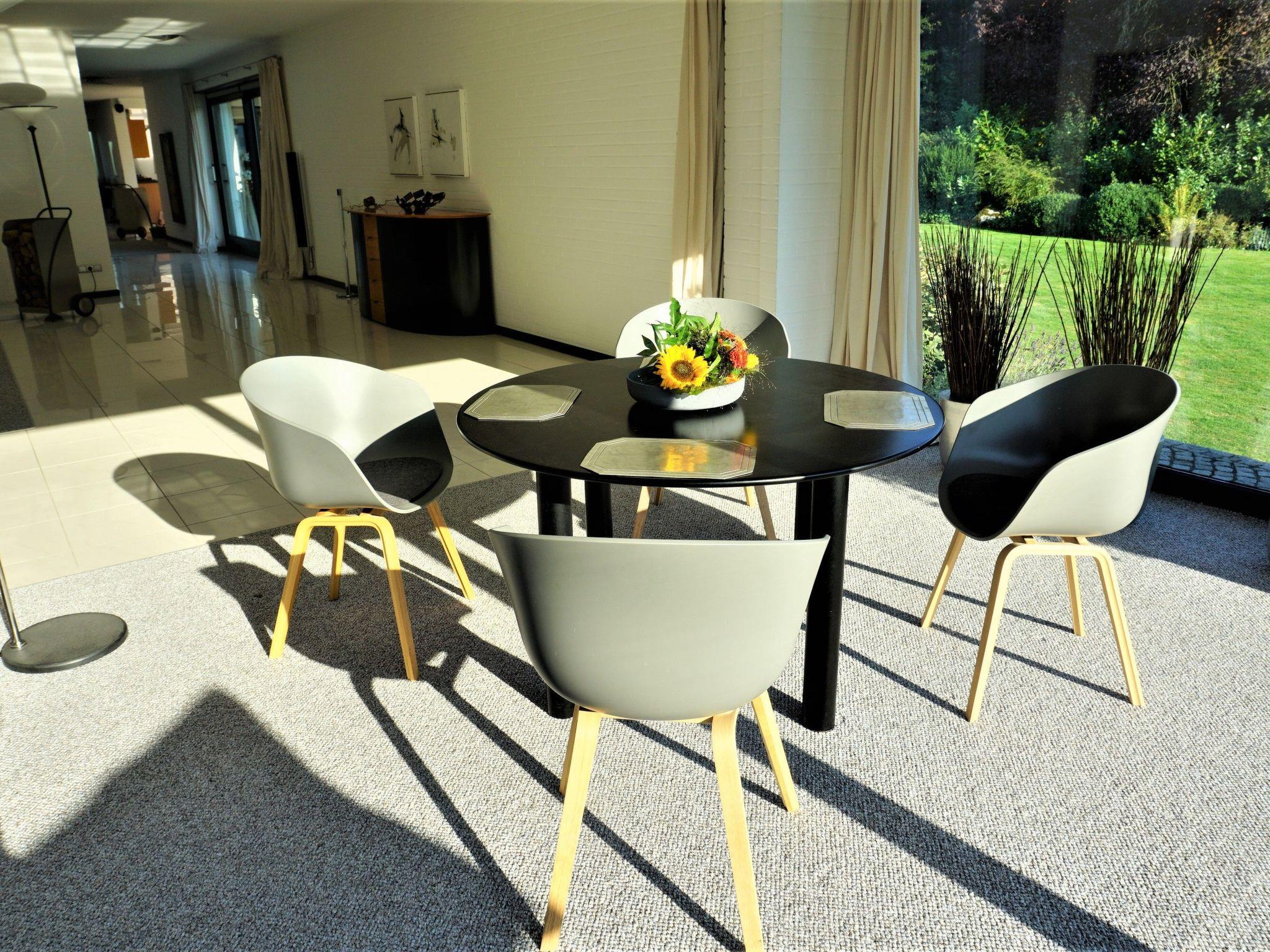 Vom offenen Wohn/Fernsehbereich mit einem weiteren Glaskamin und anschließendem Wintergarten gelangt man in ein weiteres Wohnzimmer mit separatem Fernseher.
