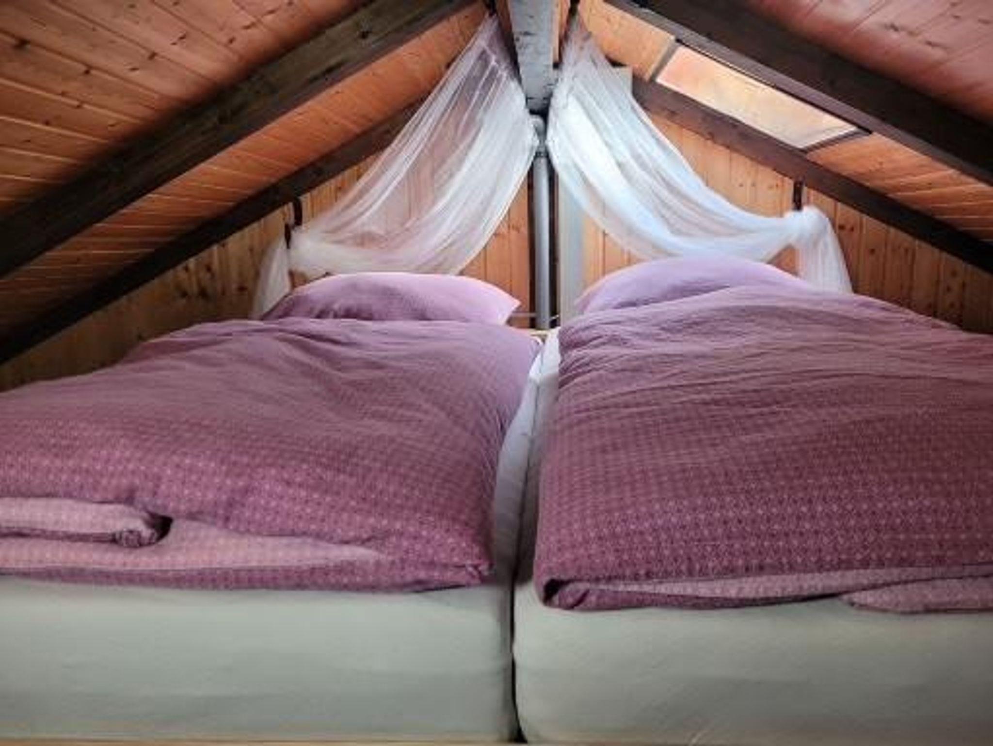Das Wohn/Esszimmer ist mit einem gemütlichen Ecksofa (ausklappbar), einer kleinen Essecke für 4 Personen (2 Stühle können dazu gestellt werden) und einer voll ausgestatteten Küche (Spülmaschine, Backofen, Gasherd,Töpfe, div. Küchenutensilien und vieles mehr) ausgestattet. Damit Sie nicht jede Kleinigkeit mitbringen müssen, stelle ich Ihnen gerne Geschirrtücher, Spüllappen, Zucker, Öl, Salz + Pfeffer und Kaffeefilter gerne zur Verfügung.Träumen Sie schön, in unserem kleinen gemütlichen Schlafzimmer im Erdgeschoss. Für Mutige geht es hoch hinaus. Eine weitere Schlafmöglichkeit befindet sich unter dem Dach. Den Schlafbereich erreichen Sie über eine gesicherte Anlegeleiter.Das Badezimmer verfügt über eine begehbare Dusche, WC, Waschbecken und Waschmaschine. (Föhn, Seife, Waschmittel vorhanden)Neben dem Badezimmer befindet sich ein begehbarer Kleiderschrank. Auf der überdachten Terrasse finden Sie neben Sitzmöglichkeiten einen gasbetriebenen Plancha-Grill, der zum Kochen im Freien einlädt.