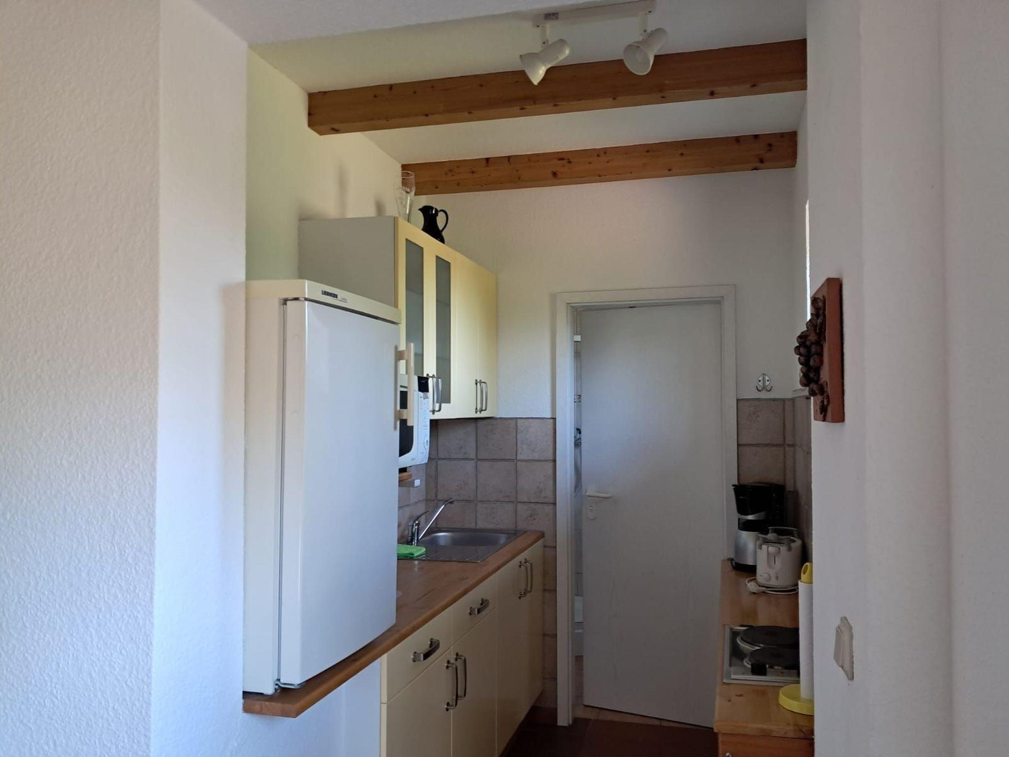 - Küche mit Herd und Backofen, Kühlschrank ohne Gefrierfunktion, diverse Küchengeräte (Kaffeemaschine für Filterkaffee, Wasserkocher, Toaster)