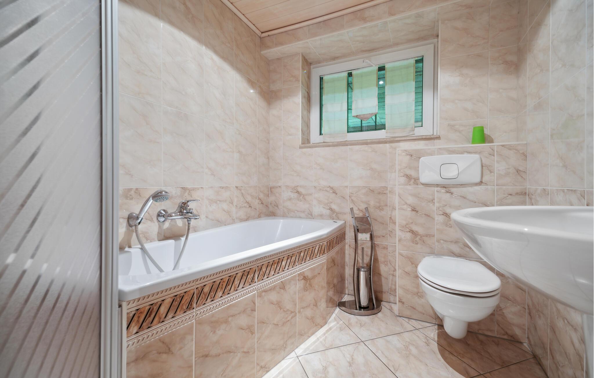 Badezimmer (nr. 3) - WC. Warmes und kaltes Wasser. Dusche und Badewanne