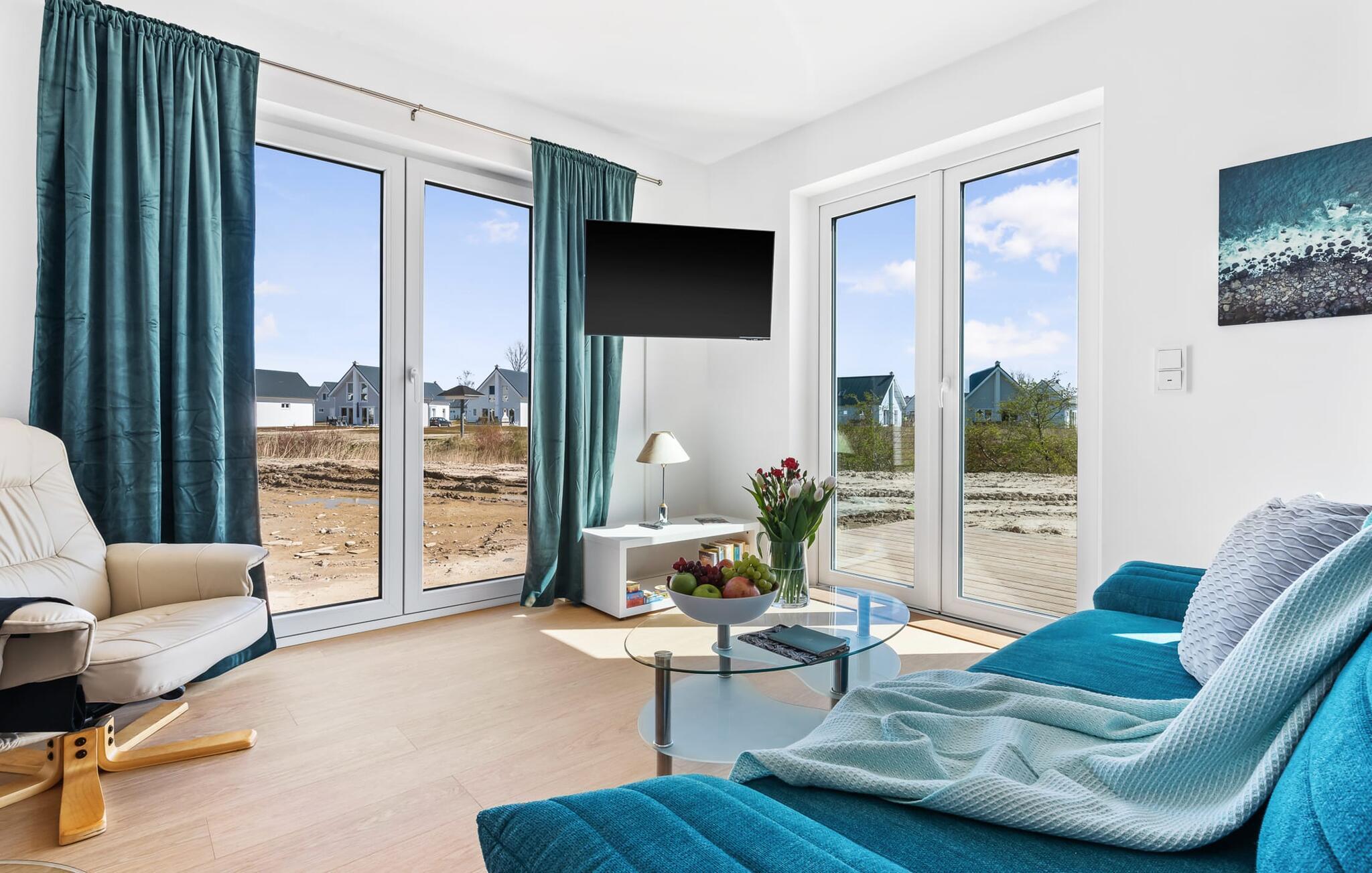 Die Einrichtung im nordischen, modernen Stil heißt einen willkommen und verbreitet Wohlfühlstimmung. Hier sorgen ein gemütliches Zweiersofa mit Schlaffunktion, ein Fernseher und ein Kaminofen auch an Schietwetter Tagen oder nach einem langen Strandtag für wohlige Wärme und Gemütlichkeit.