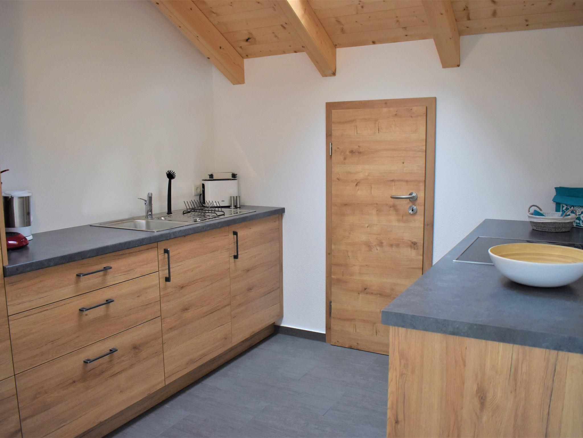 In der hochwertigen Schreinerküche haben Sie für Ihren Aufenthalt einen geräumigen Kühlschrank mit Gefrierfach. Töpfe und Pfannen, sowie eine Grundausstattung an Geschirr sind vorhanden.