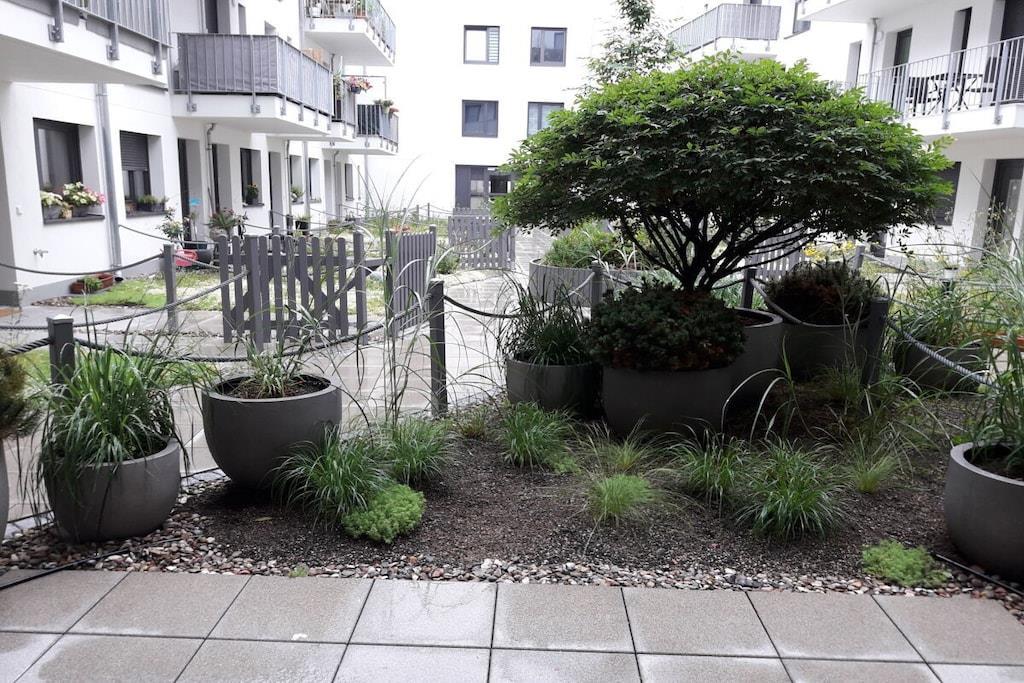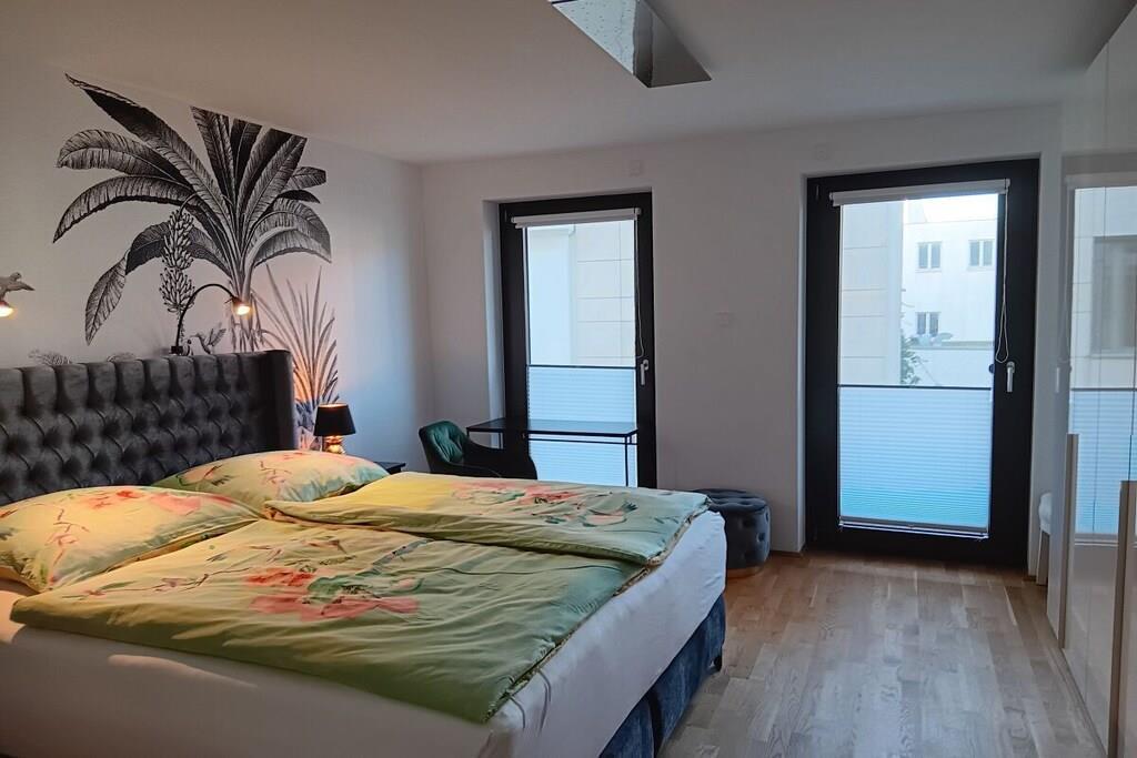 Moderne Ferienwohnung im Hanse-Karree Rostock mit Garten, Balkon und zentraler, ruhiger Lage nahe Rathaus und St.-Marien-Kirche.