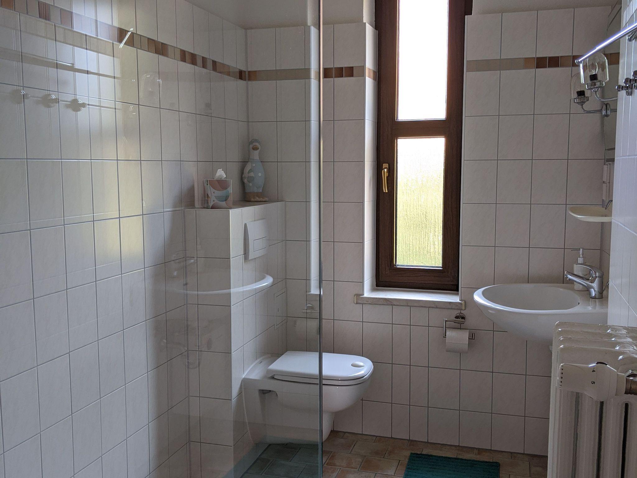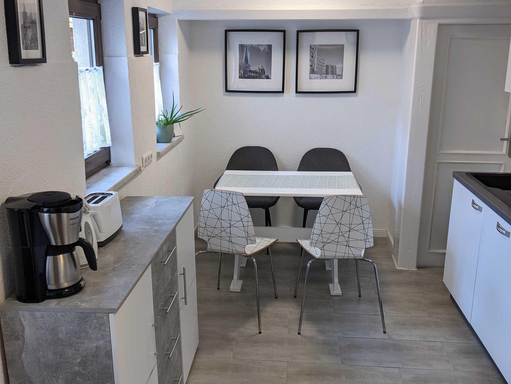 Unsere 2017 neu gestaltete Ferienwohnung befindet sich im Erdgeschoss einer Doppelhaushälfte. Das Obergeschoss ist unbewohnt, sodass Sie Ihre Zeit ungestört genießen können. Die Ferienwohnung wurde hochwertig und mit viel Liebe zum Detail für unsere Feriengäste eingerichtet und bietet Ihnen alle Annehmlichkeiten für einen entspannten Aufenthalt. Das separate Schlafzimmer ist mit einem großen Boxspringbett ausgestattet. Im Nebenbereich des Wohnzimmers ist eine Schlafcouch aufgebaut und bietet so zusätzlichen Schlafraum für zwei weitere Gäste. An die voll eingerichtete Küche mit kleinem Esstisch schließt sich die neu errichtete Terrasse mit entsprechender Sitzmöglichkeit für laue Sommerabende an. Das gemütliche Wohnzimmer mit dem großen Flachbildschirm lädt zu gemeinsamen Abenden der Entspannung ein. Wenn Sie mit der Familie anreisen, bietet unser großer Esstisch im Wohnzimmer einen Ort für gemeinsame Aktivitäten.