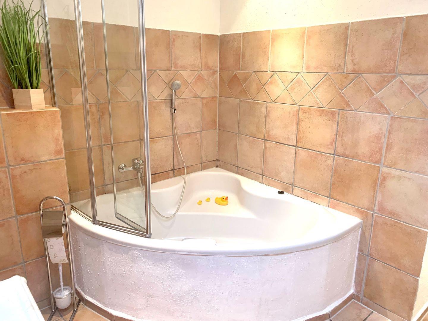Diese großzügige und lichtdurchflutete Unterkunft bietet Platz für bis zu acht Personen, was sie perfekt für Familienurlaube oder Gruppen eignet. Die Aufteilung umfasst zwei einladende Schlafzimmer und ein Badezimmer, das Ihnen mit einer Badewanne, modernen Annehmlichkeiten und grundlegenden Hygieneartikeln wie Seife und Shampoo zur Verfügung steht. Der gemütliche Wohnbereich ist mit einem großen Sofa ausgestattet und bietet Zugang zu einem überdachten Balkon, der sich ideal für entspannte Stunden im Freien eignet.