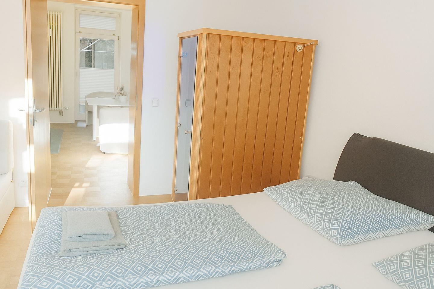Die komfortabel und gemütlich eingerichtete Wohnung mit Infrarot-Sauna befindet sich im Erdgeschoss eines Mehrfamilienhauses.