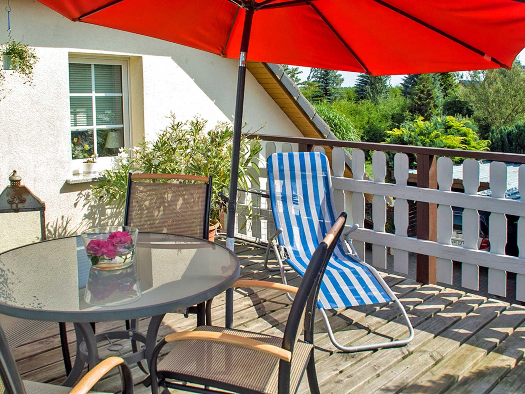 Ferienwohnung Zirnstein in Bömitz bietet ländliche Idylle, großen Balkon und gemütliches Ambiente für einen erholsamen Urlaub.