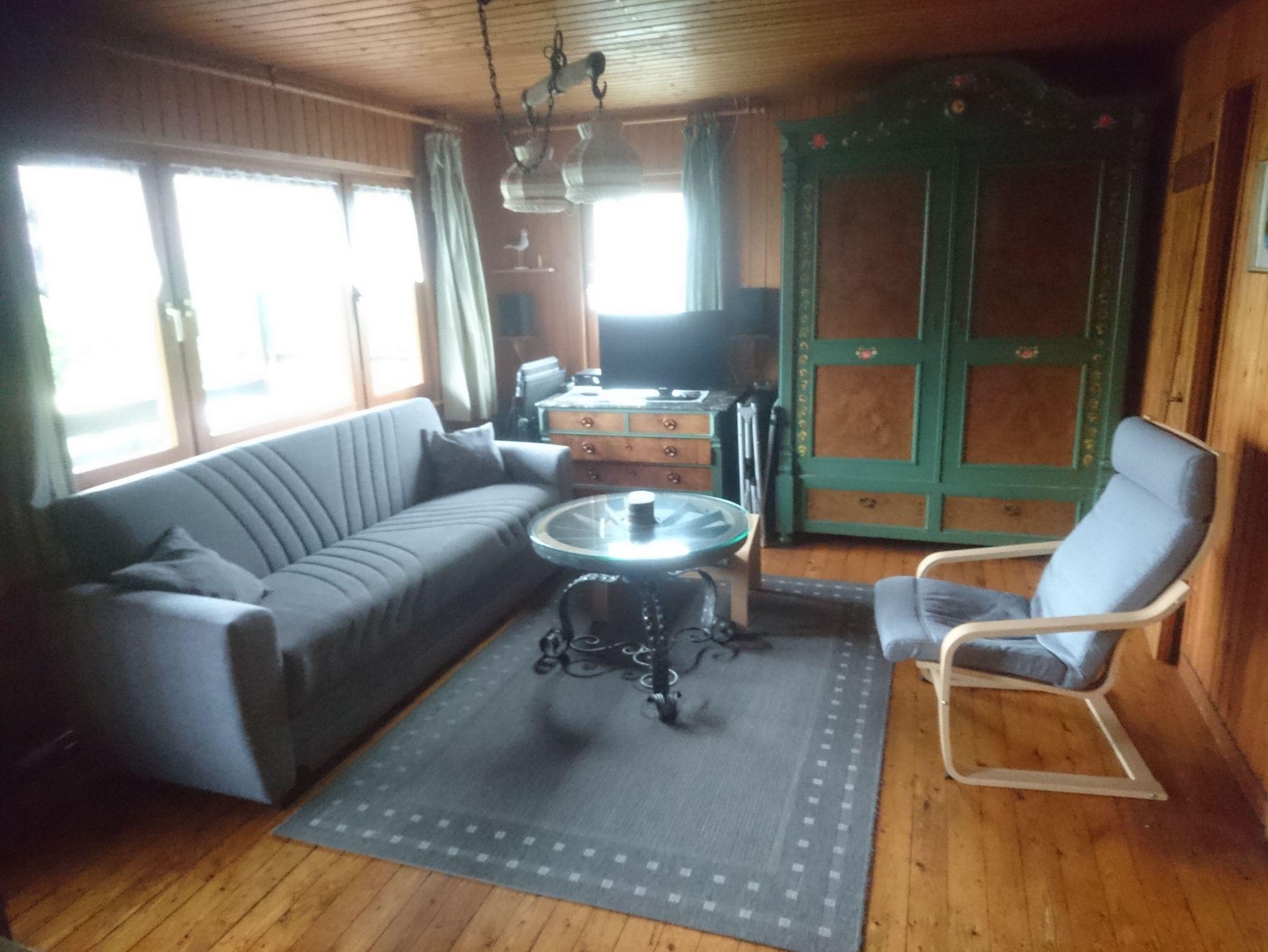 Das gemütliche Ferienhaus bietet einen komfortablen Wohnbereich mit einer einladenden 3er-Couch, einem Sessel, einem Stubentisch sowie einem Kiefer-Kleiderschrank mit Safe. Zur Unterhaltung stehen ein Sat-TV, ein Radio und ein DVD-Player zur Verfügung. Für wohlige Wärme sorgt ein kleiner elektrischer Kaminofen, ergänzt durch zusätzliche Heizungen. Die angrenzende Essgruppe mit vier Stühlen und einem Ausziehtisch lädt zu gemeinsamen Mahlzeiten ein.