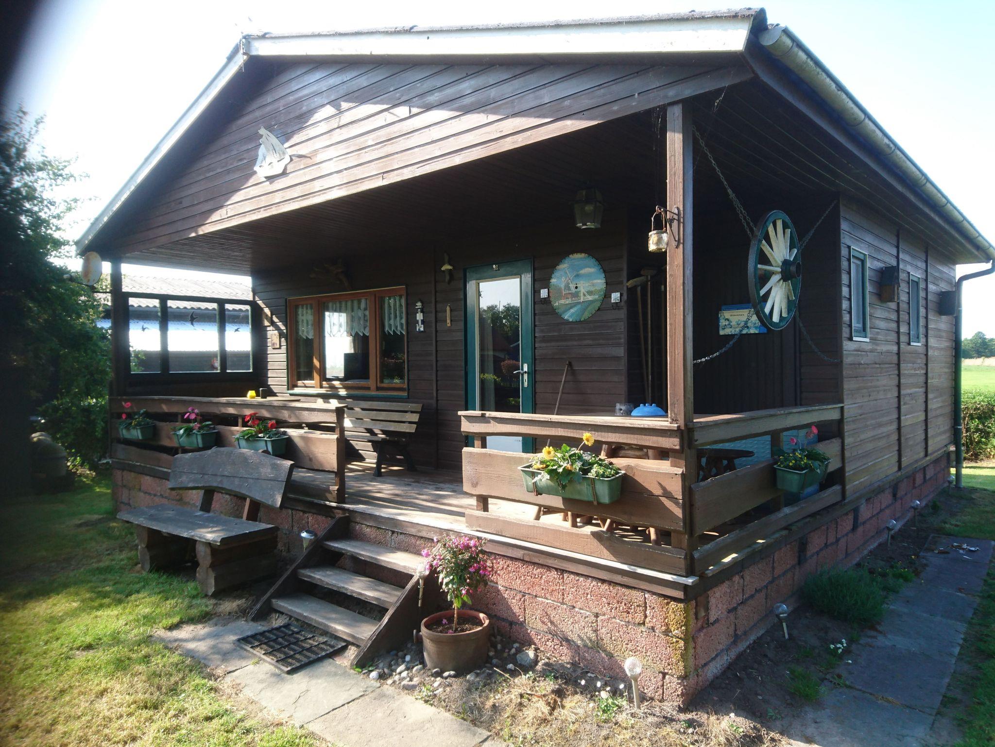 Gemütliches Holzferienhaus am Wasser mit eigenem Bootsanleger und idyllischer Veranda im ruhigen Südbrookmerland.