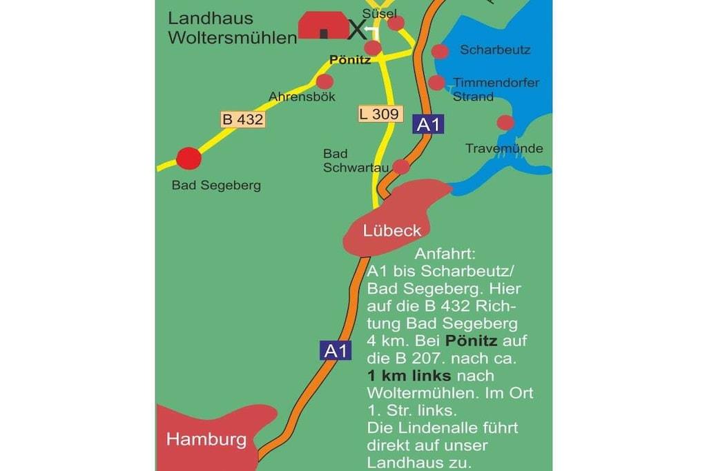 Willkommen in Woltersmühlen bei Scharbeutz, der ehemaligen Wassermühle mit Park am Fluß. Hier vergessen Sie Ihren Alltag und genießen Entspannung, Ruhe und Komfort in traumhafter Lage. Unsere Fewo ist modern ausgestattet. Wäsche und Handtücher stellen wir auf Wunsch. Die Fewo ( 2 Schlafzimmer, Wohnzimmer, Küche und Bad - 70m²) bietet Platz für bis zu 5 Personen. Sie besteht aus 2 Wohnteilen im Parterre und im Hochparterre. Dazwischen ist eine ländliche Diele mit Zugang zu einer anderen Wohnung. Unser romantischer Garten-Park steht ganz zu Ihrer Verfügung. Bei gutem Wetter genießen Sie Ihr Frühstück, einen Kaffee oder einen Wein in unserem Gartenpavillon . Den Strand Scharbeutz erreichen Sie mit dem Fahrrad. Musiker können auf einem Bechstein - Flügel Klavier spielen.