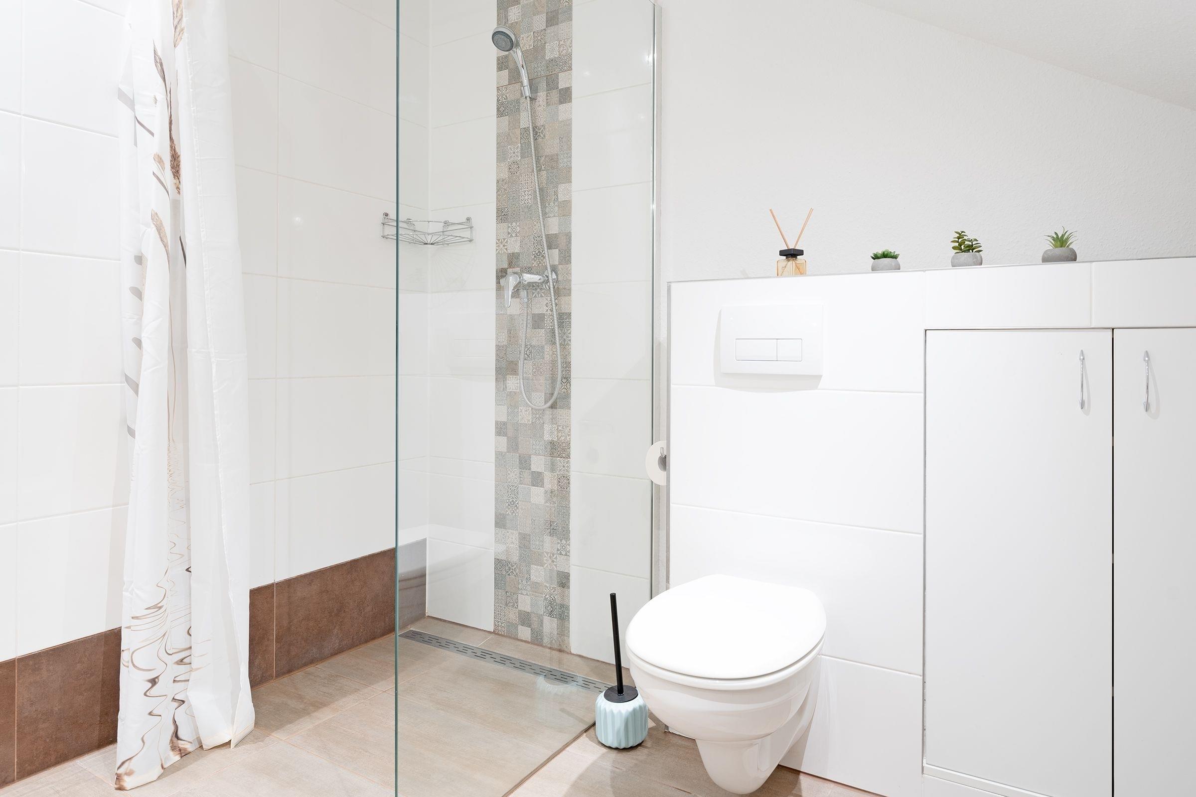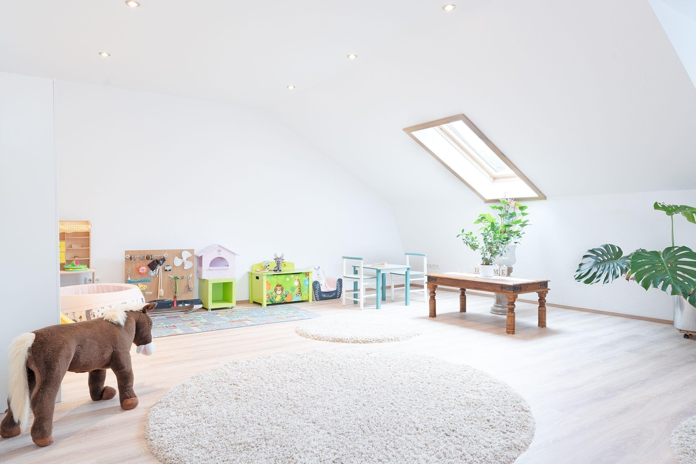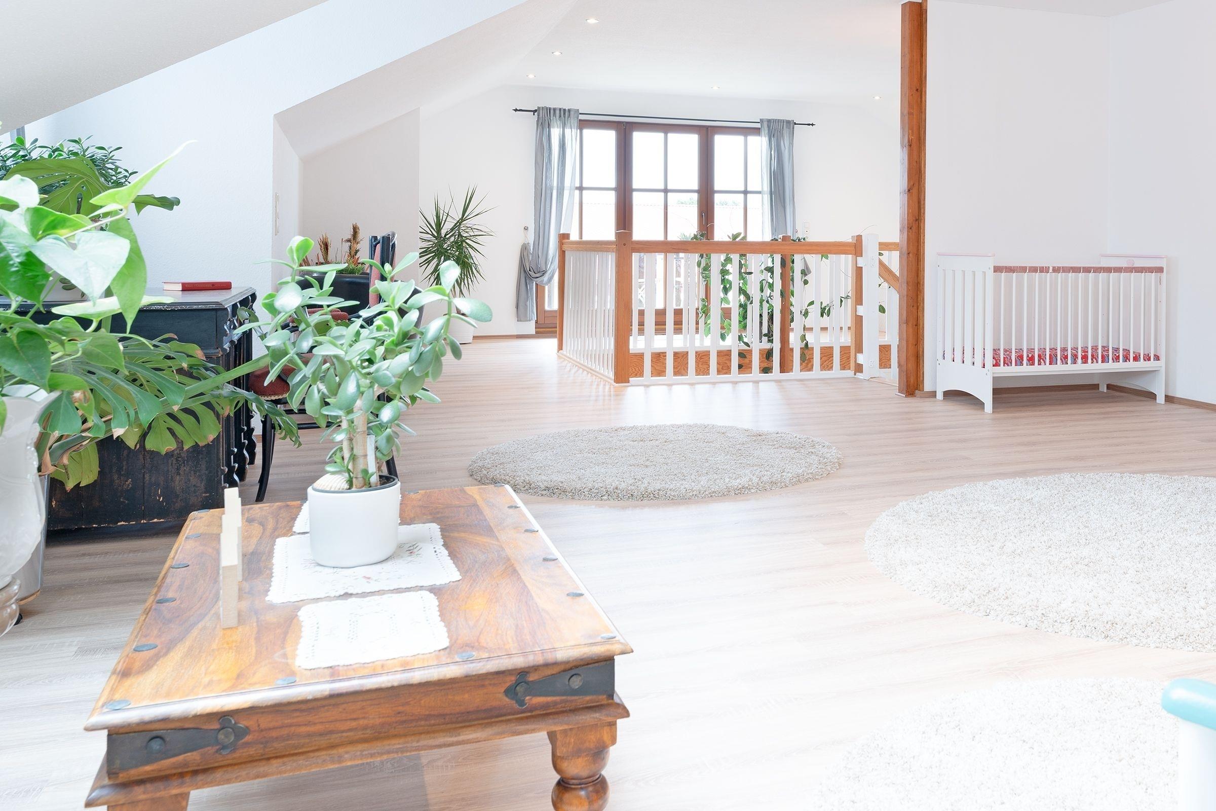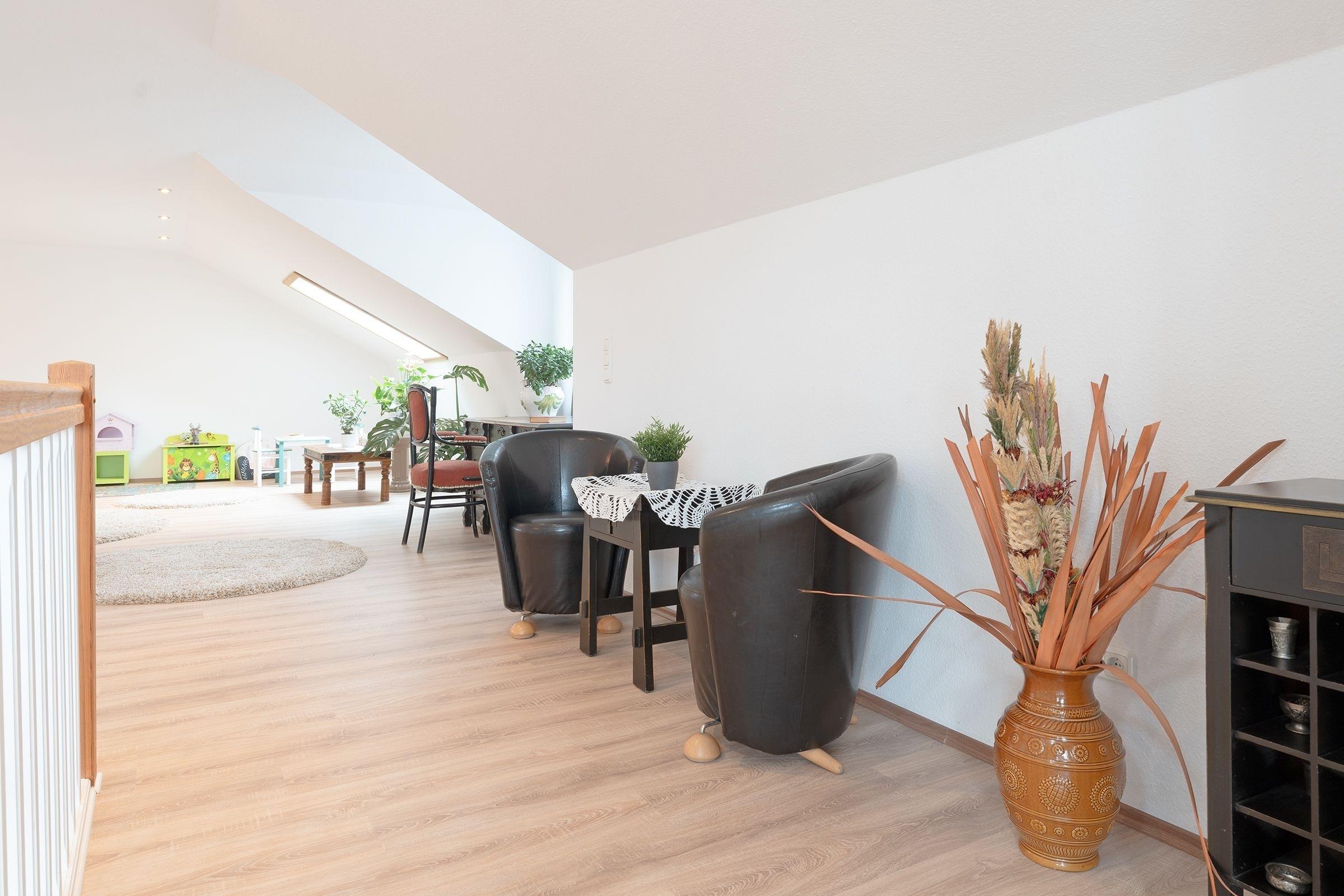 Der offene Galeriebereich im Oberschoss mit Zugang zum Südbalkon ist ein perfekter Bereich zum Verweilen - die kleinen Gäste freuen sich hier über ein Spielzimmer. Nebenan befindet sich das 4. Schlafzimmer mit Doppelbett (140x200 cm). Ein weiteres Badezimmer mit bodengleicher Dusche rundet das Angebot dieses Ferienhauses perfekt ab.