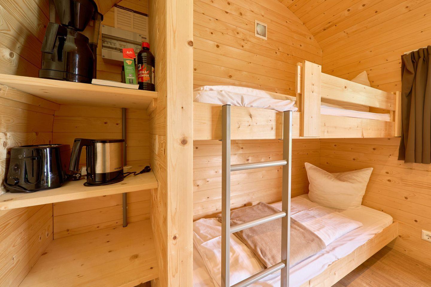 Kleine Wohnraum-Lodge mit Doppel- und Etagenbett, ideal für Familien oder Gruppen
