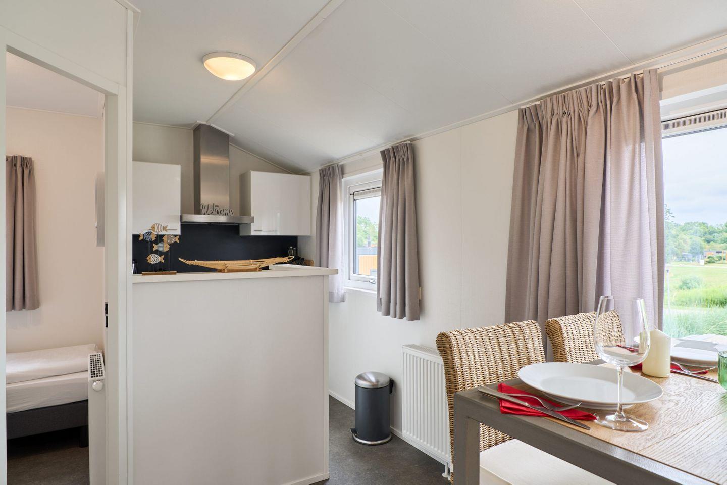 Im Inneren empfängt Sie das Ferienhaus mit einer modernen, offenen Küche, die in den Wohnbereich integriert ist. Diese ist vollständig ausgestattet mit Kaffeemaschine, Wasserkocher, Toaster, Backofen, Herd, Kühlschrank mit Gefrierfach, Geschirrspüler sowie sämtlichem Geschirr und Besteck. Ein Esstisch für gemeinsame Mahlzeiten rundet den Küchenbereich ab. Für Ihren Komfort sind Bettwäsche, Handtücher, Geschirrhandtücher und ein Staubsauger vor Ort vorhanden.