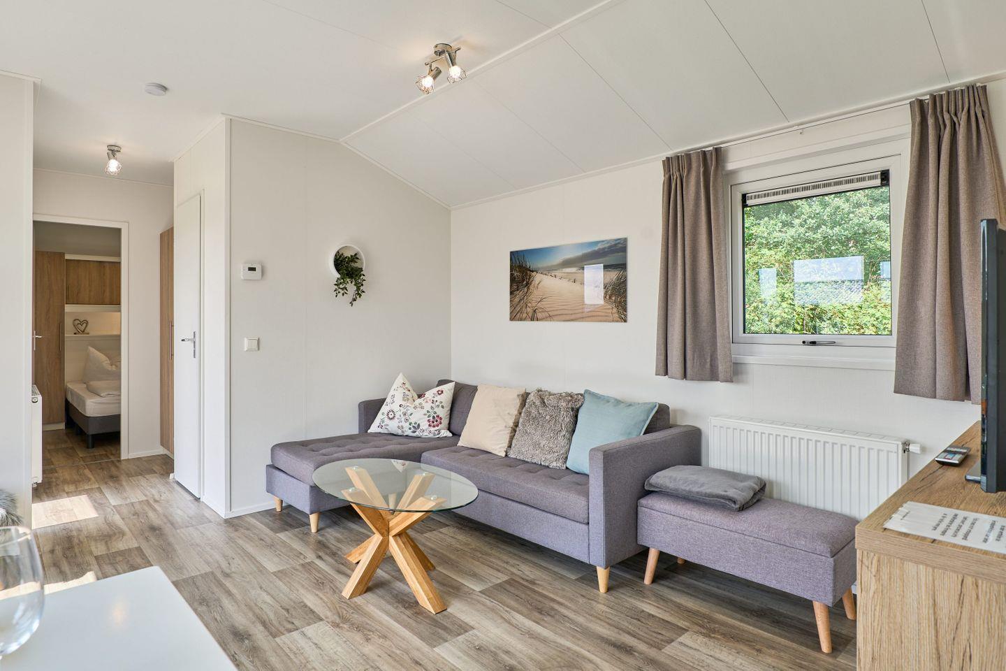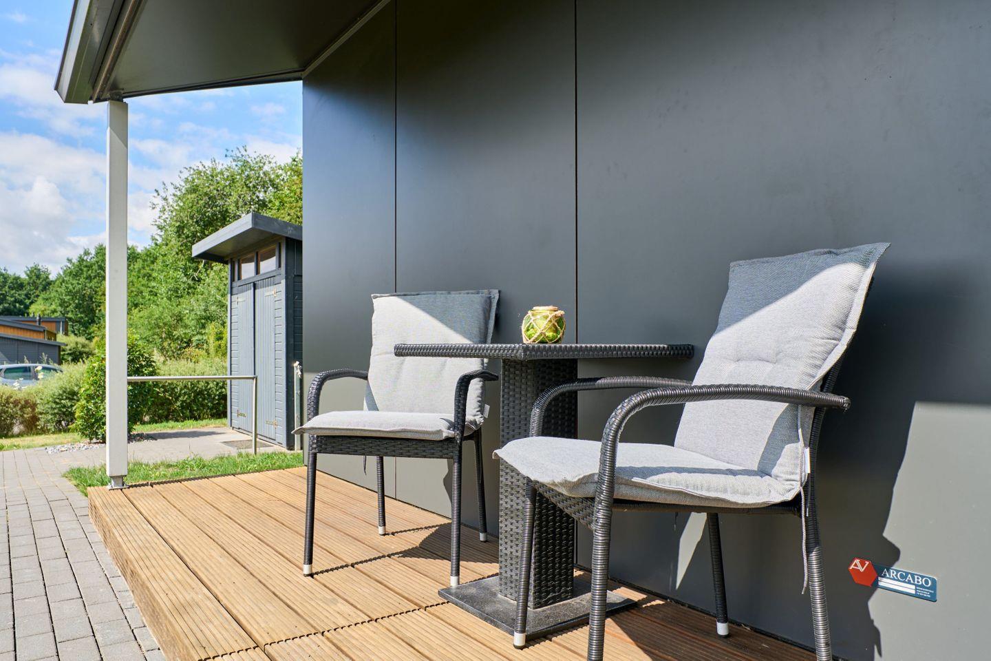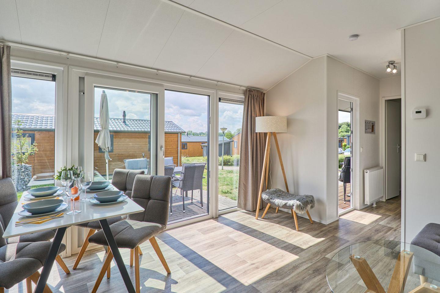 Freistehende Lodge im Seepark Süsel mit moderner Ausstattung und vielfältigen Freizeitmöglichkeiten am Wasser.