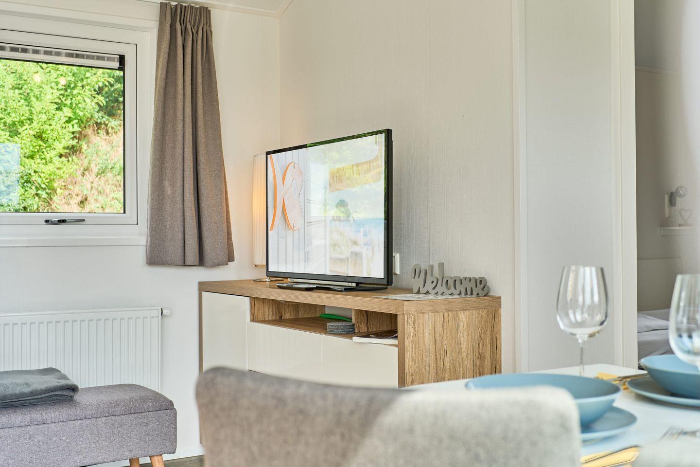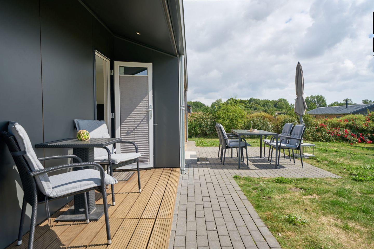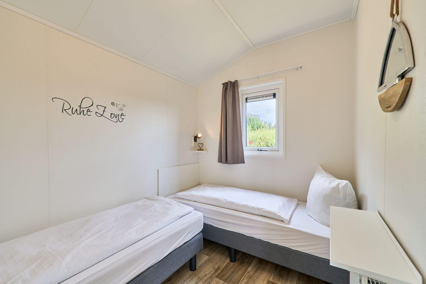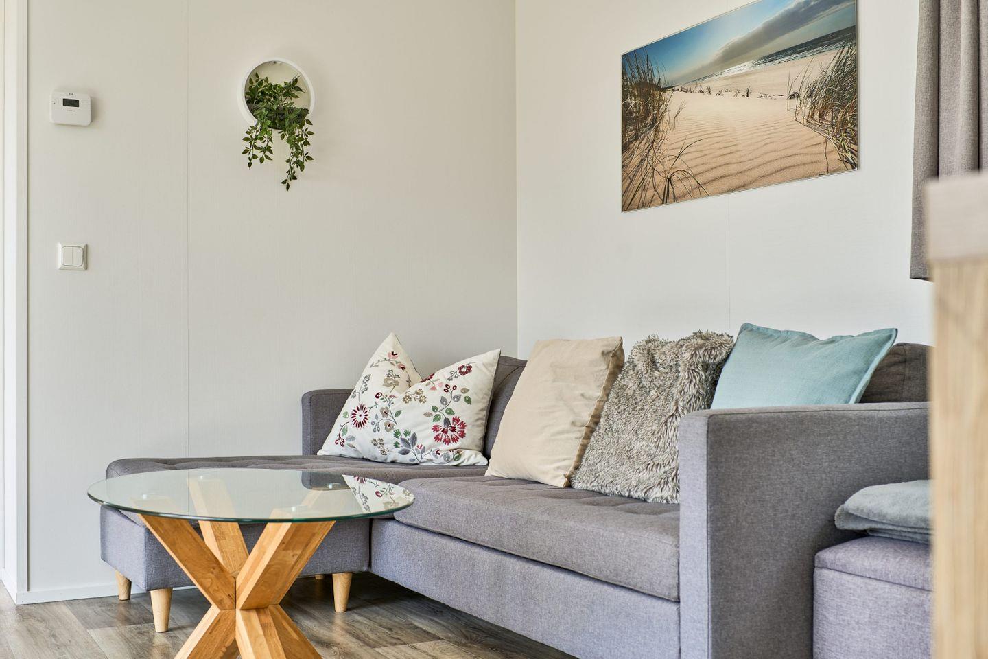 Freistehende Lodge im Seepark Süsel mit moderner Ausstattung und vielfältigen Freizeitmöglichkeiten am Wasser.