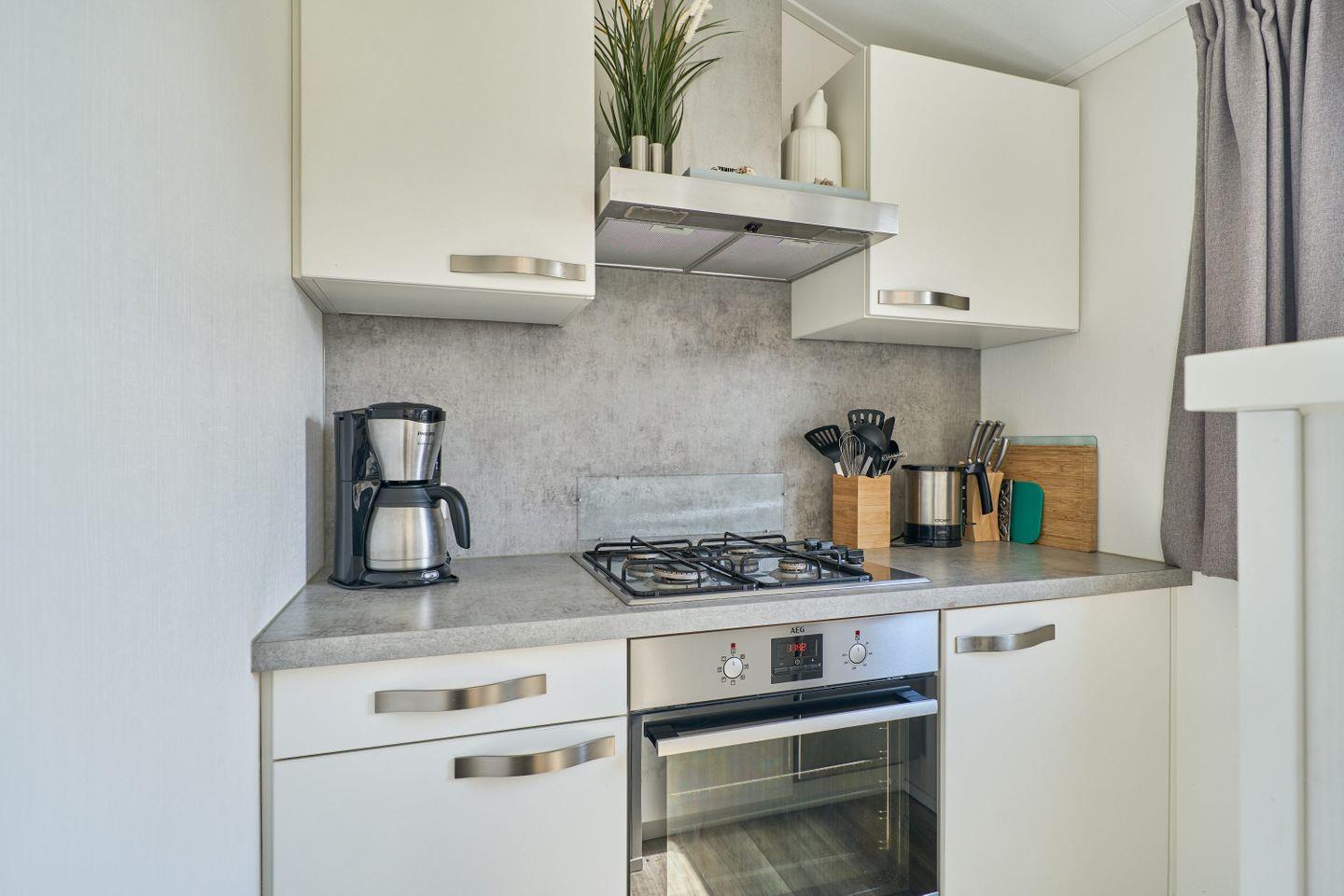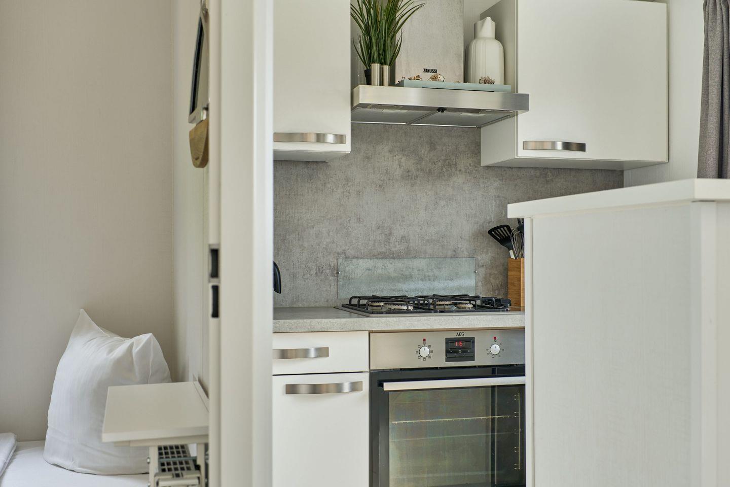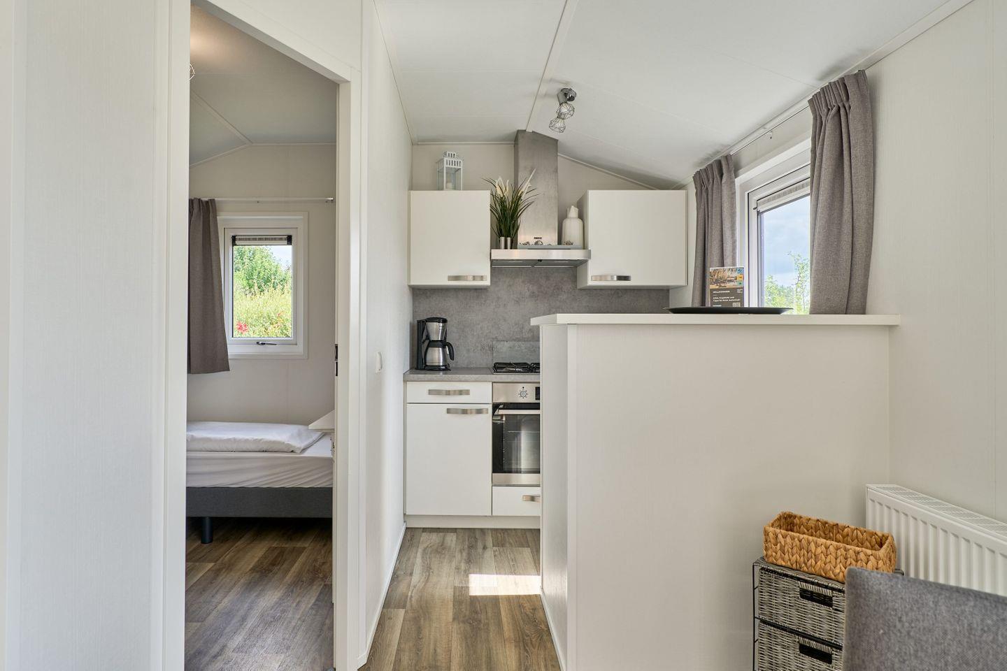 Ihre kompakte, aber liebevoll eingerichtete Lodge bietet alles, was Sie für einen entspannten Aufenthalt benötigen. Der kombinierte Wohn- und Schlafraum verfügt über ein bequemes Doppelbett sowie ein Etagenbett – ideal für Paare oder kleine Familien. In der Küchenzeile mit zwei Herdplatten und einem Kühlschrank bereiten Sie mühelos ein leckeres Frühstück oder kleine Mahlzeiten zu. Für Ihre tägliche Erfrischung steht Ihnen ein eigenes WC zur Verfügung; moderne Gemeinschaftsduschen befinden sich ganz in der Nähe im zentralen Waschhaus der Anlage. Bei gutem Wetter lädt ein kostenlos ausleihbarer Grill zu geselligen Abenden im Freien ein. Auf Wunsch kann gegen eine geringe Gebühr ein Hochstuhl für Kleinkinder bereitgestellt werden (bitte vorab anfragen).