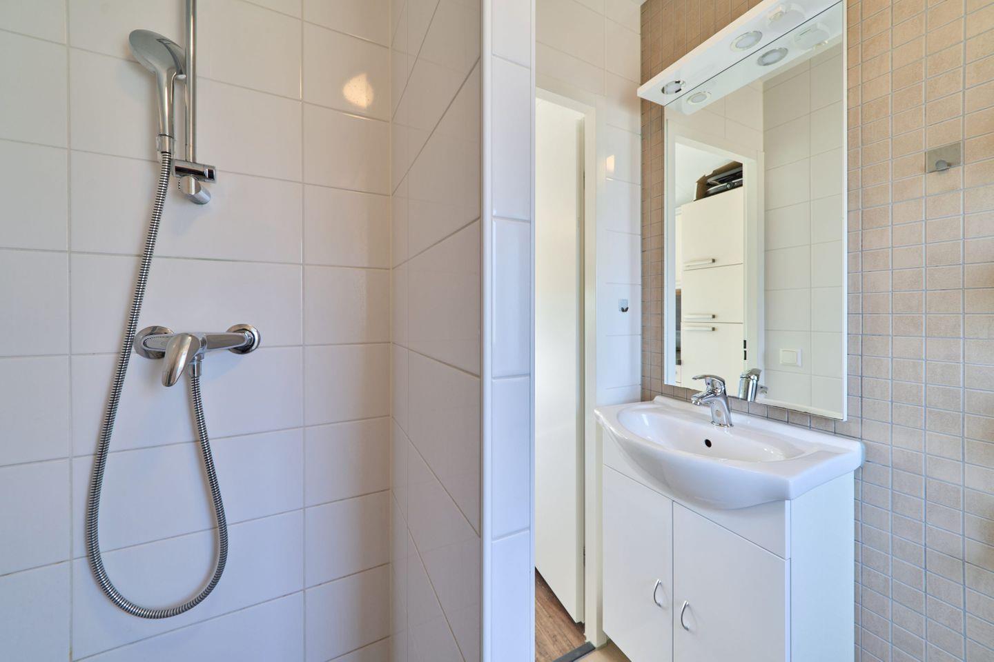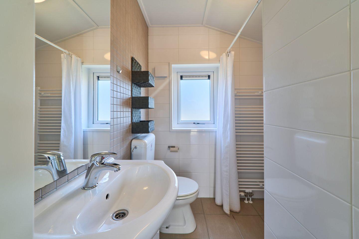 Das Badezimmer ist mit Dusche, WC, Waschbecken und Spiegel ausgestattet. Die Nutzung von Waschmaschine und Trockner ist gemeinschaftlich innerhalb der Ferienanlage möglich. Für zusätzliche Sicherheit sind Rauchmelder installiert und alle Fenster sind mit Sichtschutz versehen.