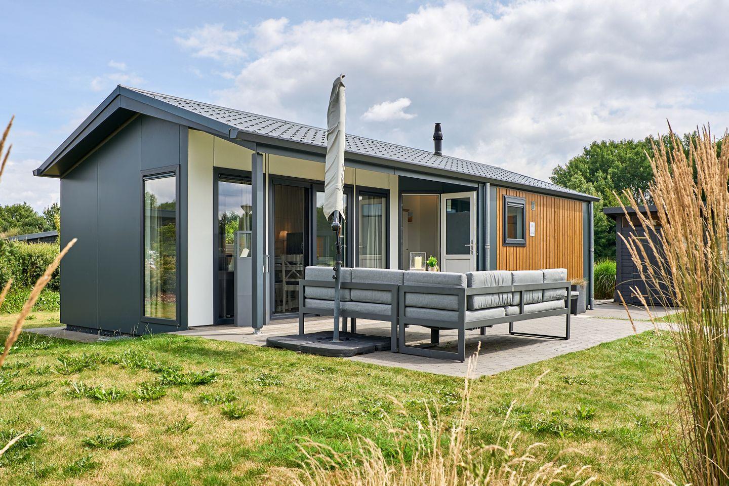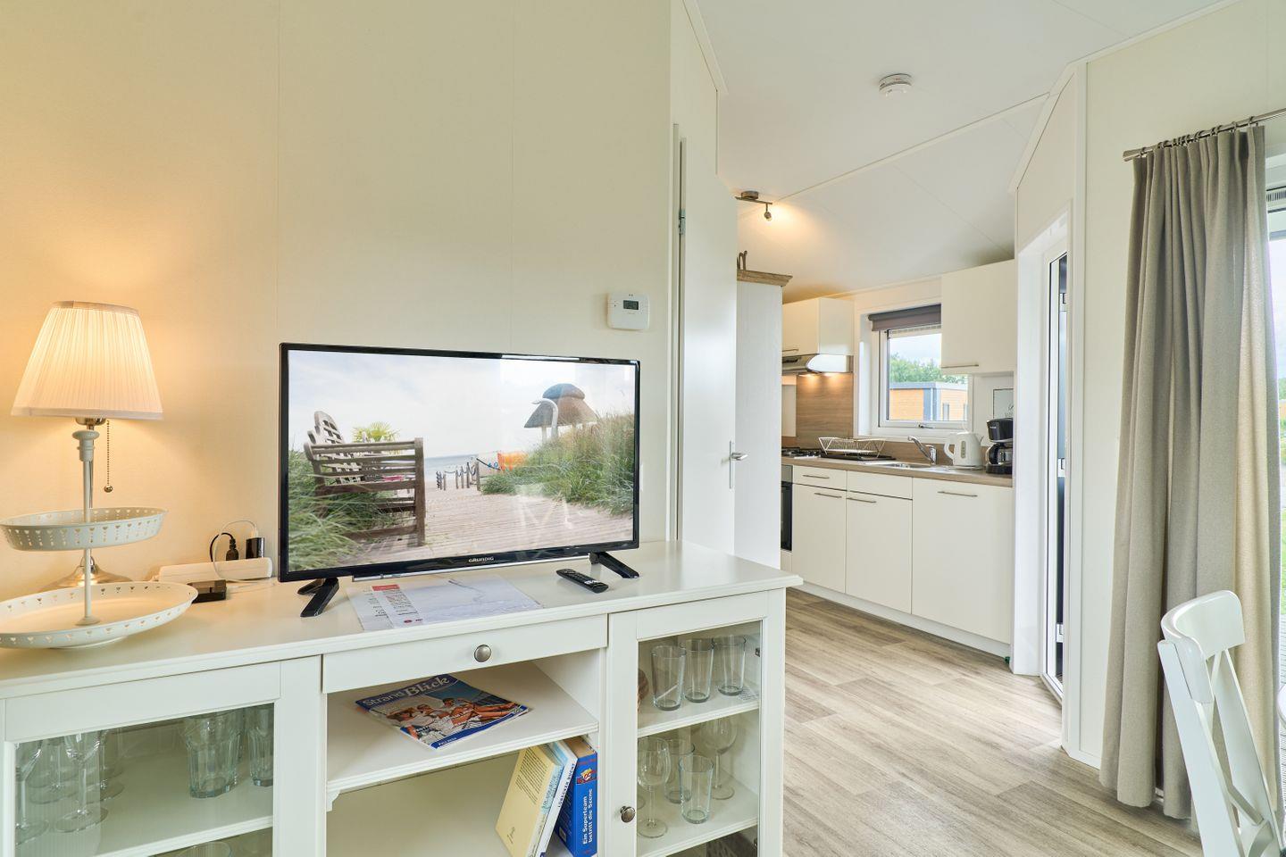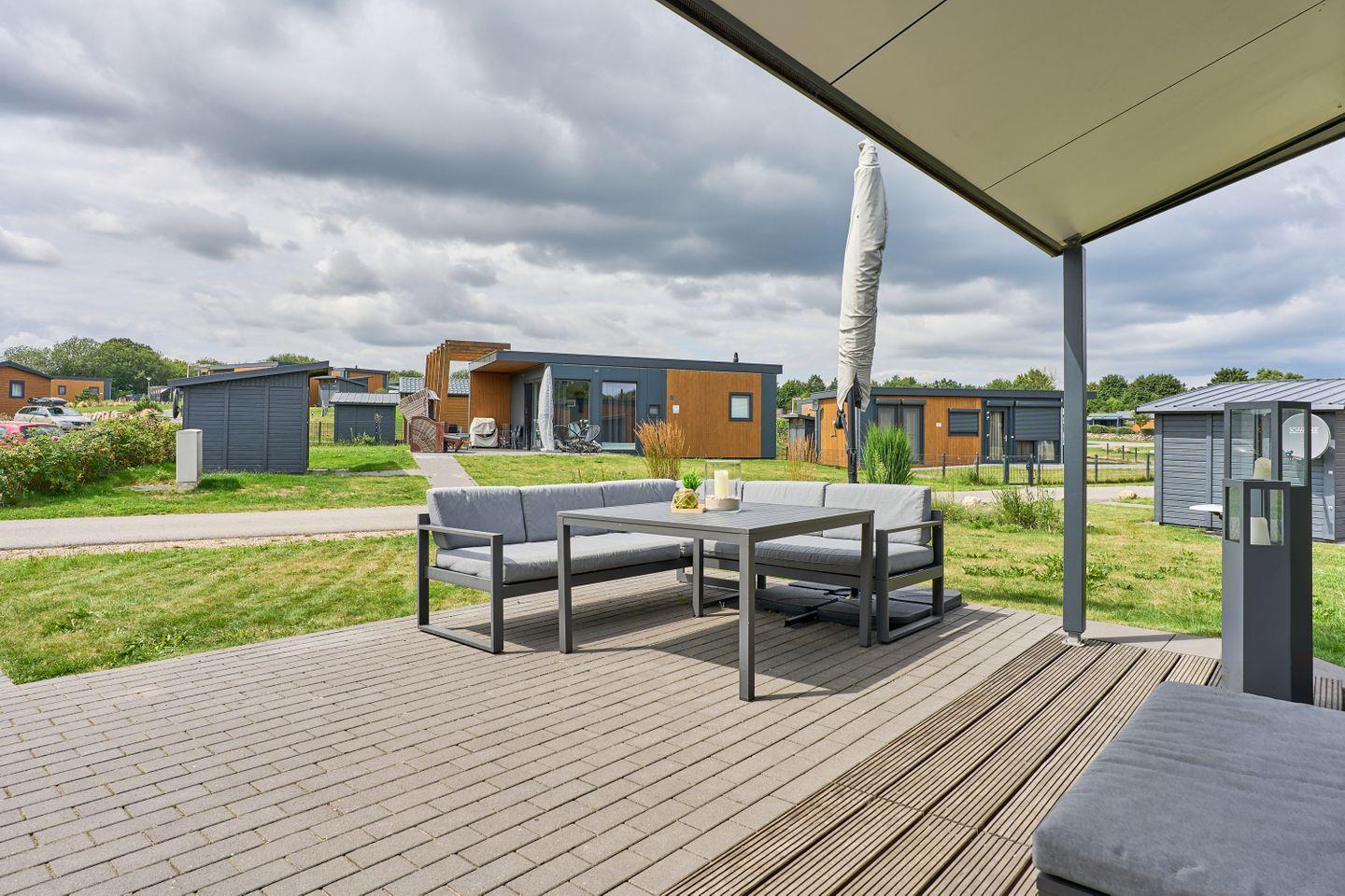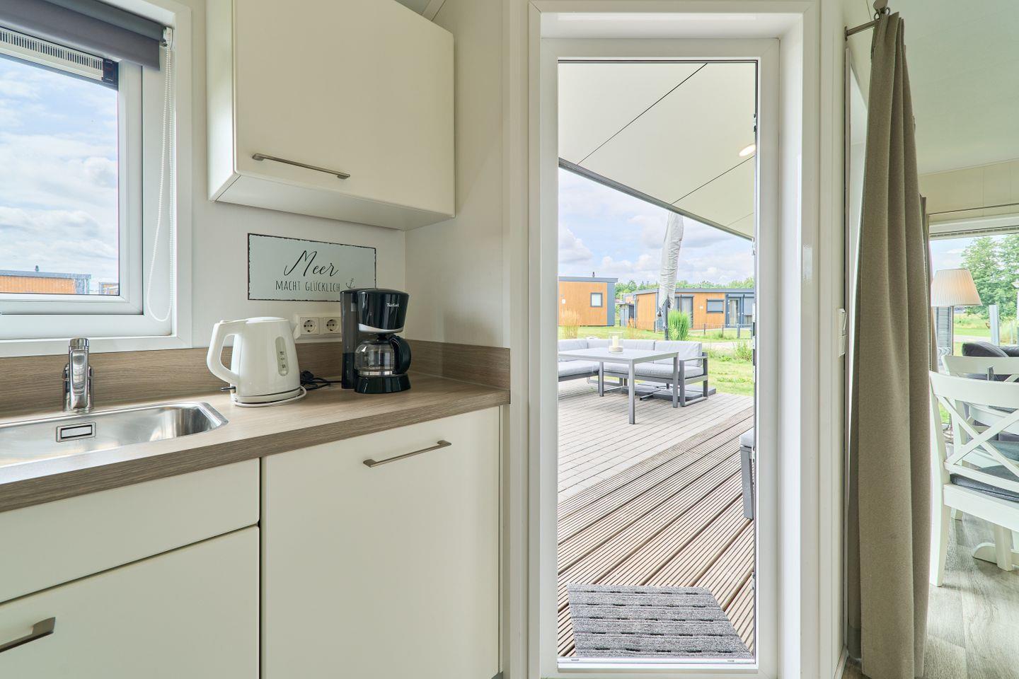 Das freistehende Ferienhaus bietet auf 40 m² einen durchdachten Grundriss für bis zu vier Personen. Zwei separate Schlafzimmer gewährleisten Privatsphäre und Komfort sowohl für Eltern mit Kindern als auch für kleine Gruppen. Der offene Wohnbereich verbindet Wohnzimmer und Küche harmonisch und schafft ein helles, freundliches Ambiente. Die moderne Küche ist voll ausgestattet mit Ceranherd, Backofen, Spülmaschine, Kühlschrank mit Gefrierfach, Kaffeemaschine, Wasserkocher, Toaster sowie sämtlichen Kochutensilien, Geschirr und Besteck. Ihre Mahlzeiten können Sie am Esstisch im gemütlichen Wohnbereich oder auf der eigenen Terrasse genießen. Die Terrasse ist mit Gartenmöbeln möbliert und lädt zum Entspannen im Grünen ein.