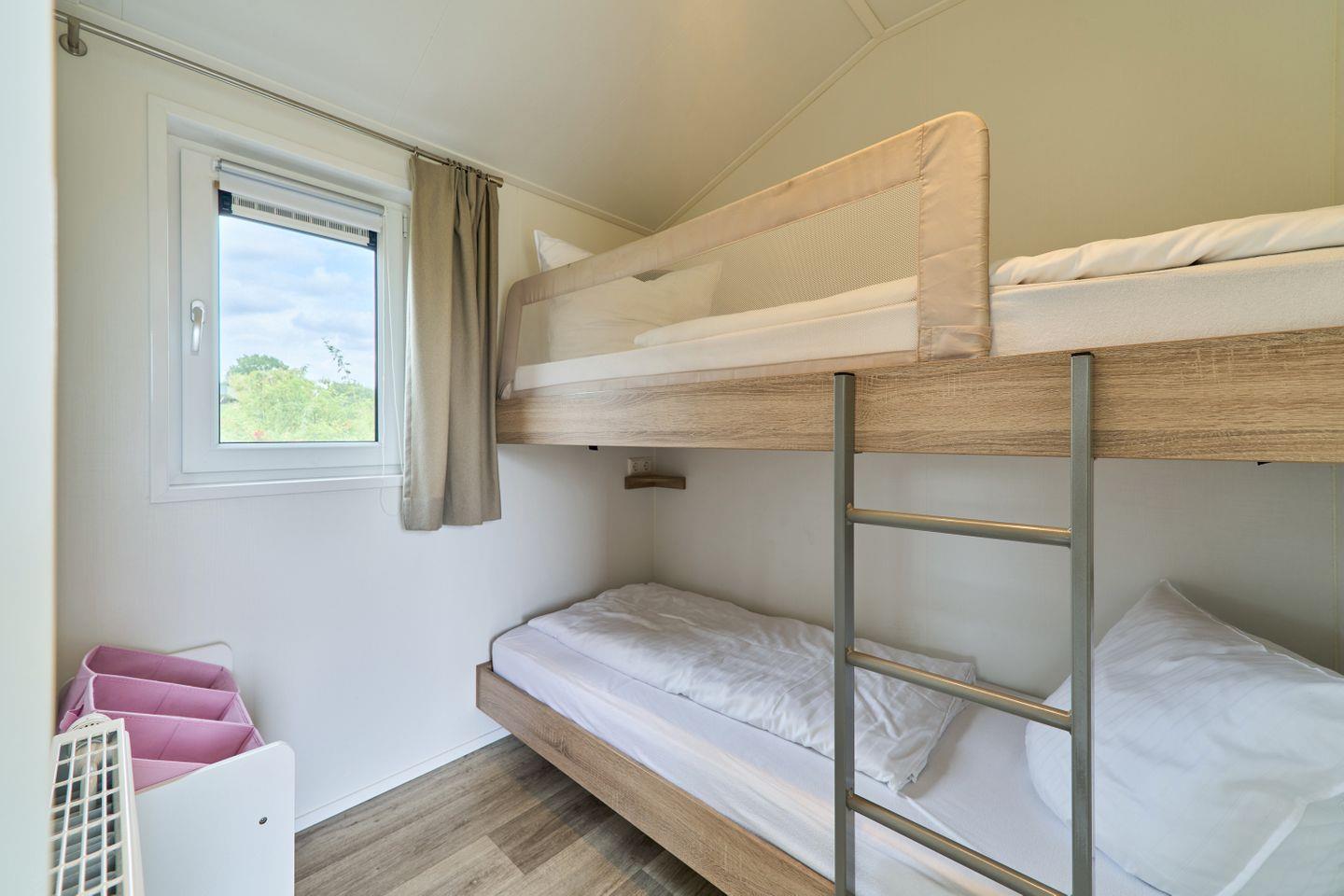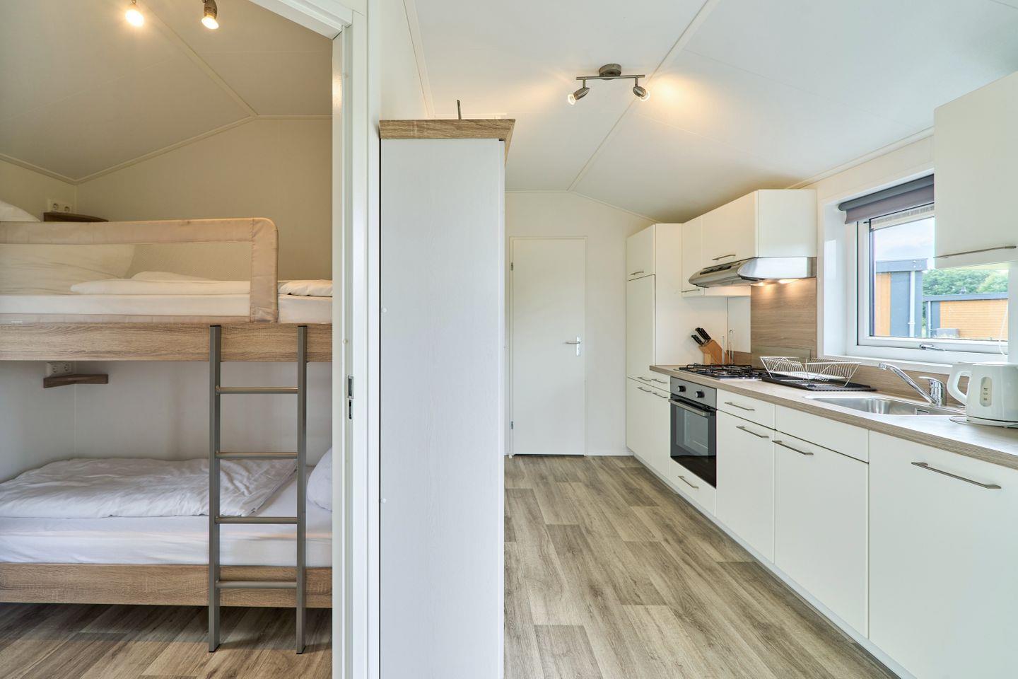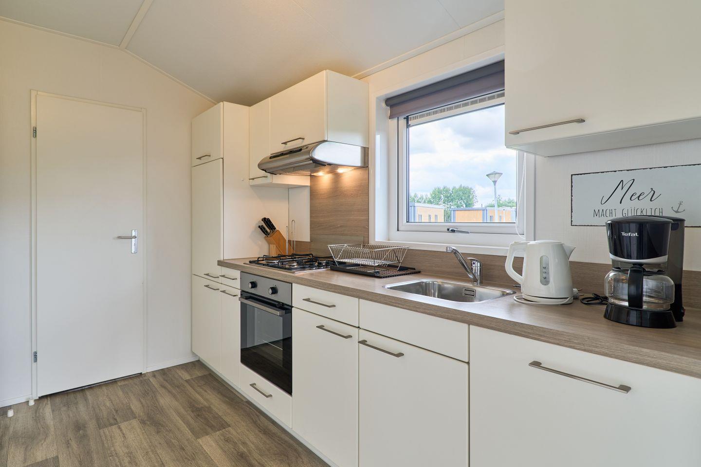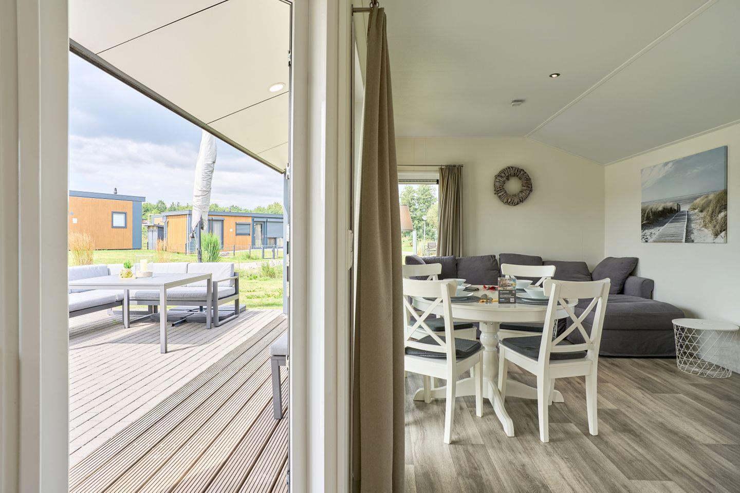 Das freistehende Ferienhaus bietet auf 40 m² einen durchdachten Grundriss für bis zu vier Personen. Zwei separate Schlafzimmer gewährleisten Privatsphäre und Komfort sowohl für Eltern mit Kindern als auch für kleine Gruppen. Der offene Wohnbereich verbindet Wohnzimmer und Küche harmonisch und schafft ein helles, freundliches Ambiente. Die moderne Küche ist voll ausgestattet mit Ceranherd, Backofen, Spülmaschine, Kühlschrank mit Gefrierfach, Kaffeemaschine, Wasserkocher, Toaster sowie sämtlichen Kochutensilien, Geschirr und Besteck. Ihre Mahlzeiten können Sie am Esstisch im gemütlichen Wohnbereich oder auf der eigenen Terrasse genießen. Die Terrasse ist mit Gartenmöbeln möbliert und lädt zum Entspannen im Grünen ein.
