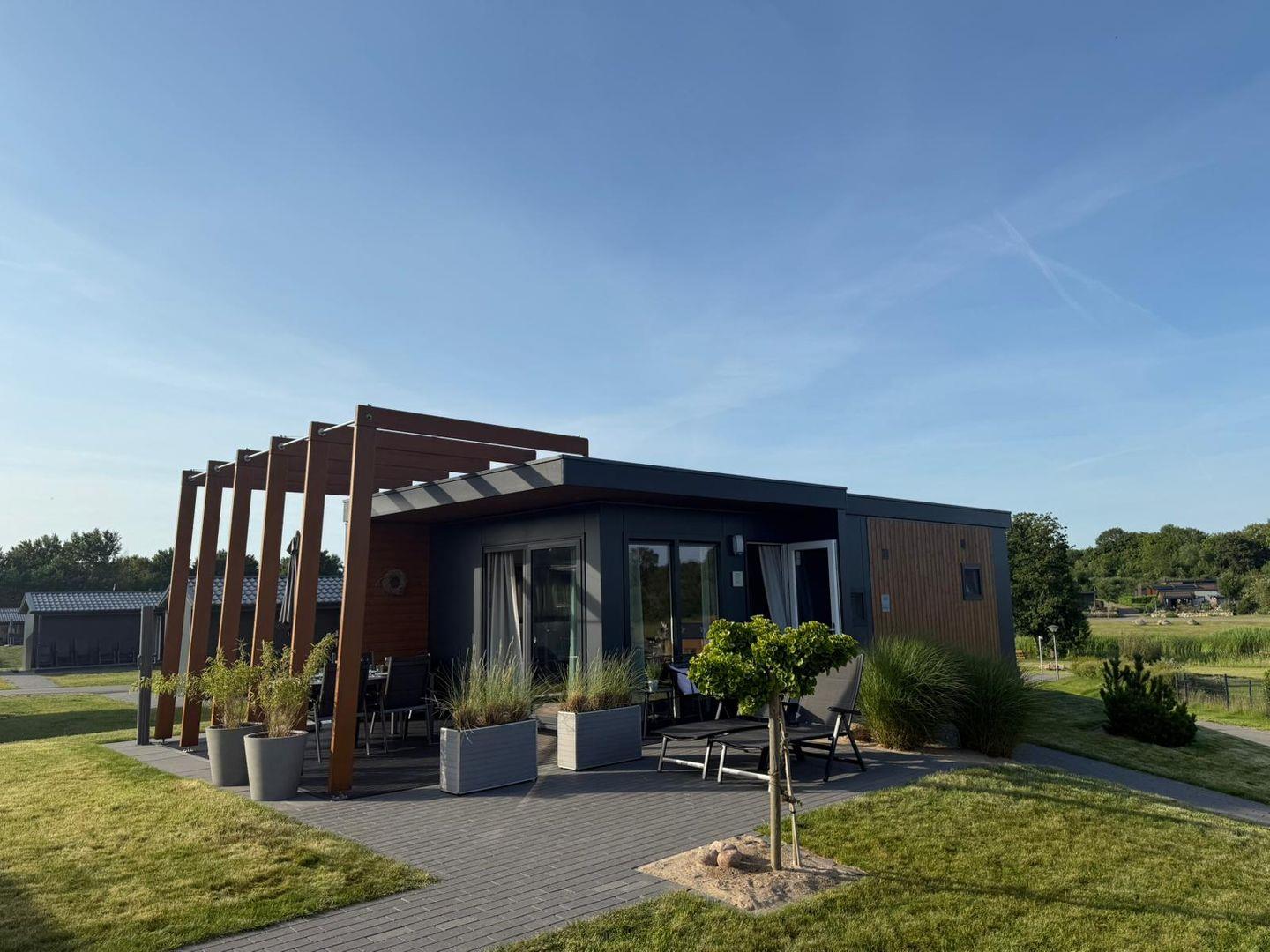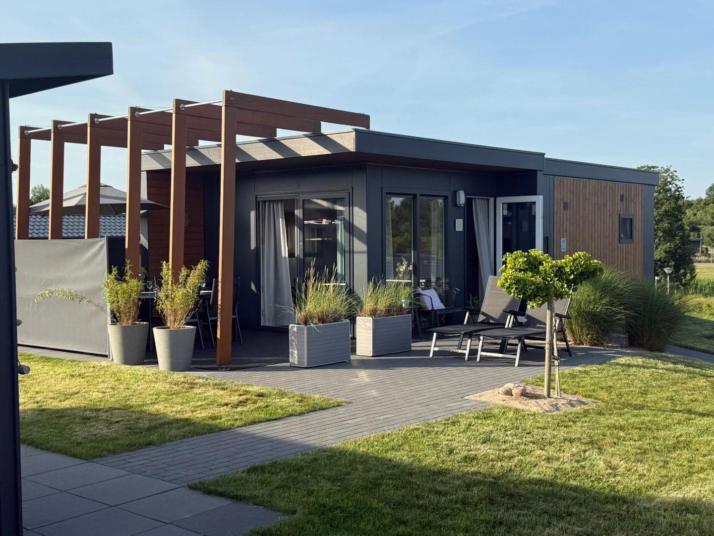 Modernes Ferienhaus Chalet Relax-Inn mit Seeblick und privater Terrasse in Süsel.