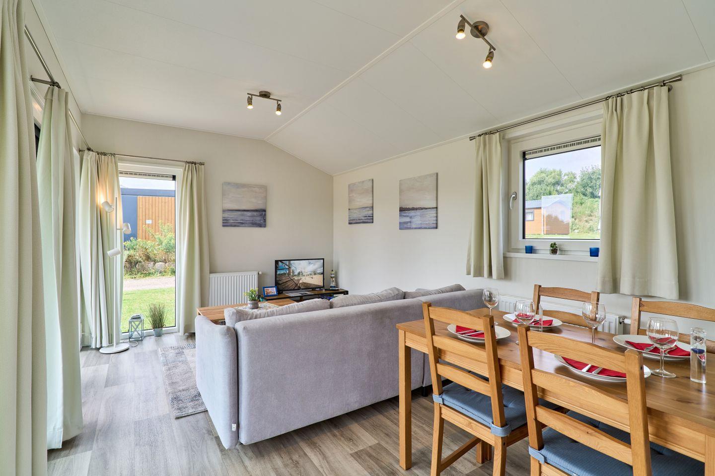 Das Ferienhaus ist für Familien mit Kindern hervorragend geeignet und zeichnet sich durch kinderfreundliche Ausstattung sowie einen Spielplatz in der Ferienanlage aus. Babys sind ebenfalls herzlich willkommen. Die moderne Raumaufteilung mit offen gestalteter Küche zum Wohnzimmer schafft eine angenehme Wohlfühlatmosphäre, die durch ein komfortables Sofa und einen Esstisch ergänzt wird. Die Küchenzeile ist mit Herd, Backofen, Kühlschrank, Gefrierfach, Spülmaschine, Kaffeemaschine, Wasserkocher, Toaster und sämtlichen Küchenutensilien ausgestattet und ermöglicht die bequeme Selbstversorgung mit allem, was dazu gehört. Geschirr, Besteck sowie Geschirrhandtücher werden bereitgestellt.