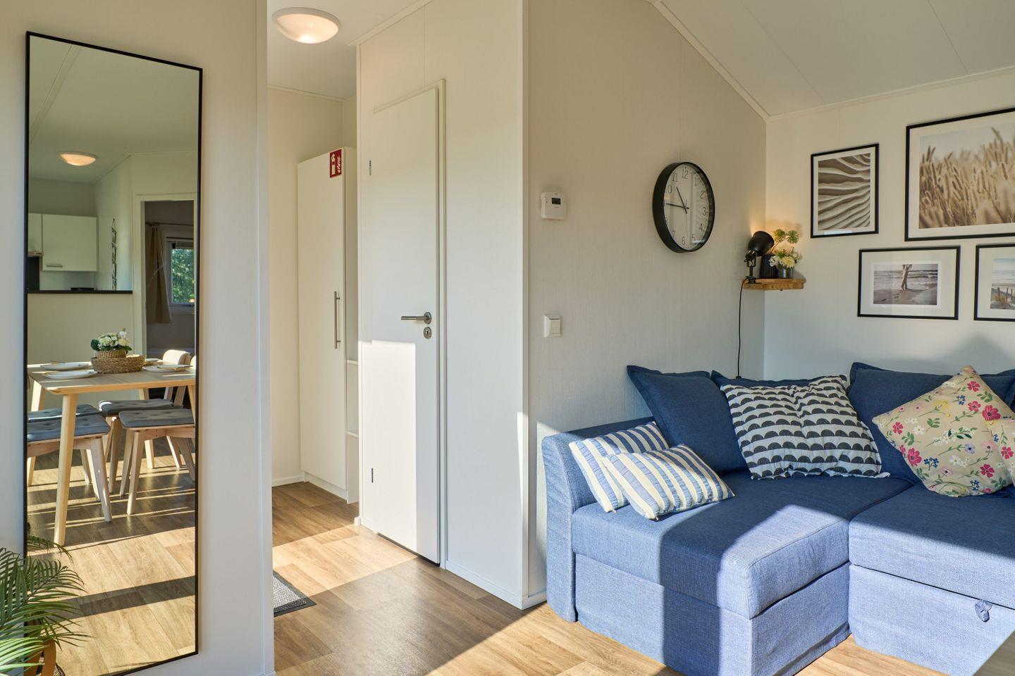 Im einladenden Wohnbereich erwartet Sie eine gemütliche Sofaecke, die zum Entspannen einlädt. An den Wohnbereich schließt sich der offene Essbereich an, ausgestattet mit einem praktischen Esstisch und ausreichend Platz für gemeinsame Mahlzeiten. Die offene Küche ist zum Wohnzimmer hin integriert und bietet alles, was Sie für eine Selbstversorgung benötigen: Ein Herd mit Backofen, Kühlschrank mit Gefrierfach, Spülmaschine, Kaffeemaschine, Toaster, Wasserkocher sowie eine vollständige Ausstattung mit Geschirr, Besteck, Küchenutensilien und Geschirrhandtüchern.