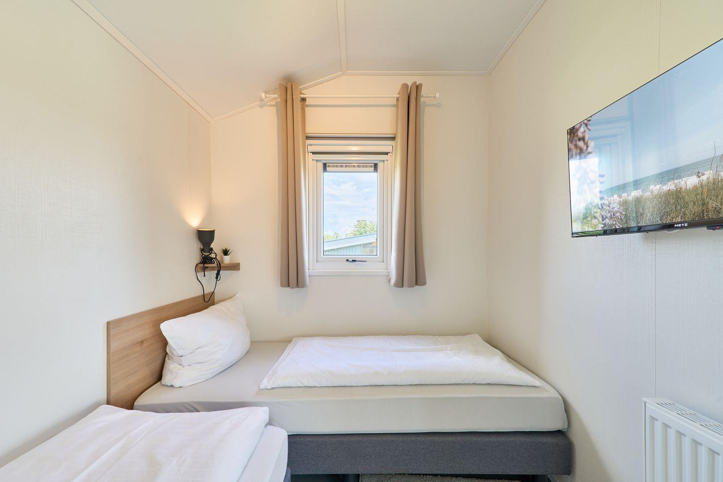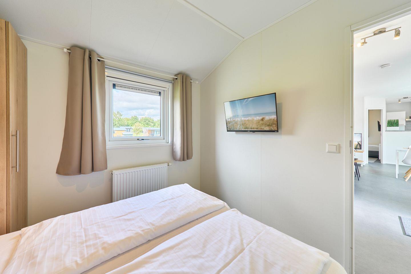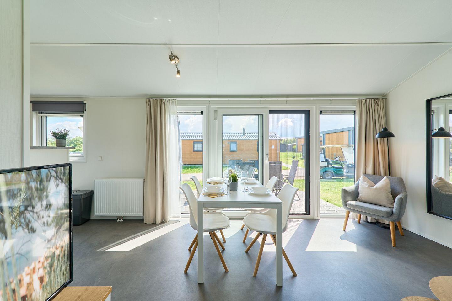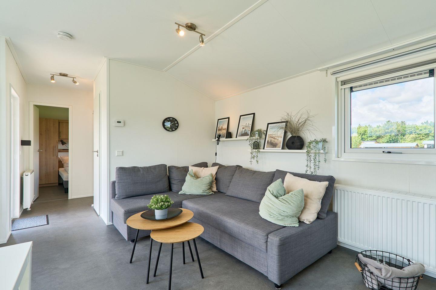 Das Ferienhaus erstreckt sich über ca. 40 m² und bietet mit zwei separaten Schlafzimmern und insgesamt fünf Schlafmöglichkeiten ausreichend Platz für bis zu fünf Personen. Im offen gestalteten Wohn- und Essbereich können Sie gesellige Abende verbringen oder in Ruhe die Umgebung genießen. Eine moderne und voll ausgestattete Küche steht Ihnen zur Verfügung, inklusive Herd, Backofen, Kühlschrank mit Gefrierfach, Spülmaschine, Kaffeemaschine, Wasserkocher, Toaster sowie Geschirr und sämtlichen Küchenutensilien. Am Esstisch finden alle Gäste bequem Platz. Der lichtdurchflutete Wohnbereich ist durch moderne Fenster mit Sichtschutz hell und freundlich gestaltet und lädt mit einem bequemen Sofa zum Verweilen ein.