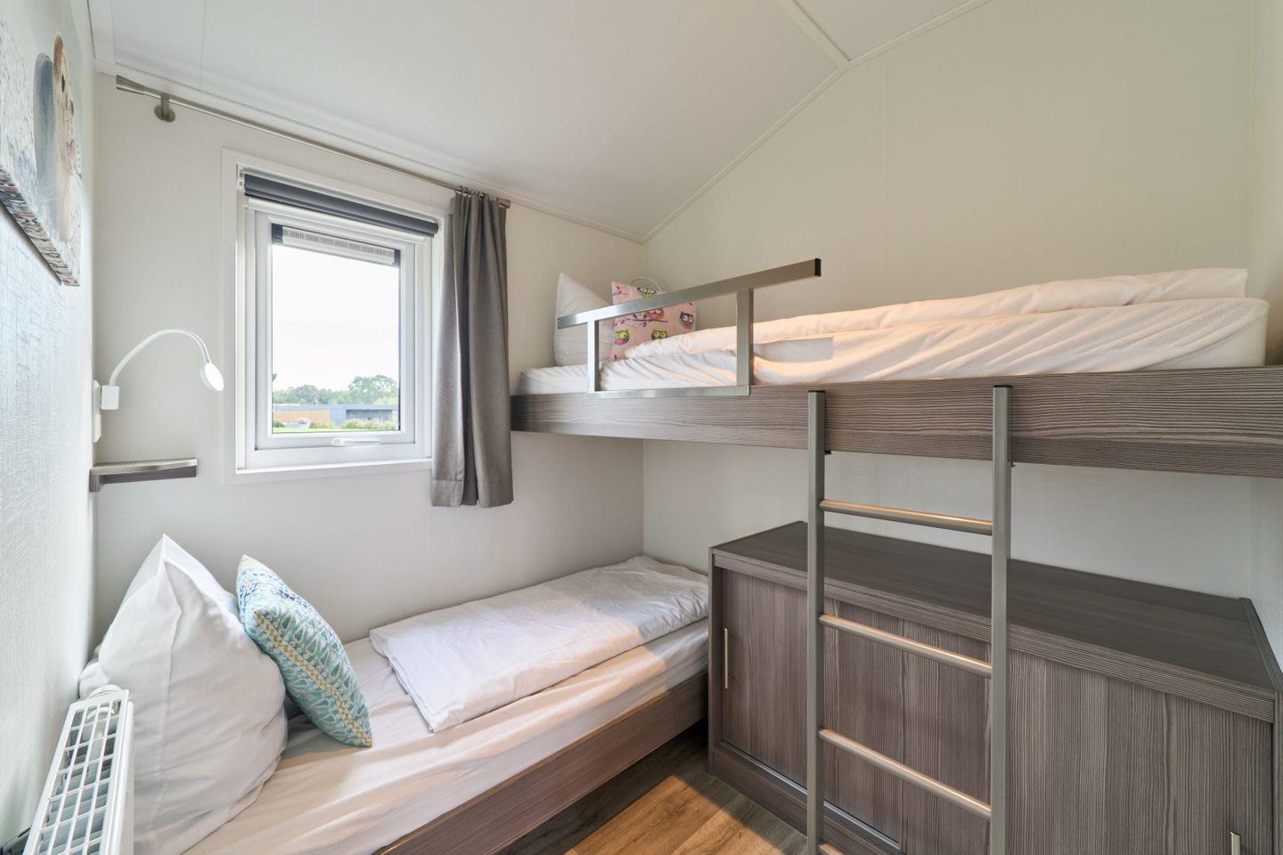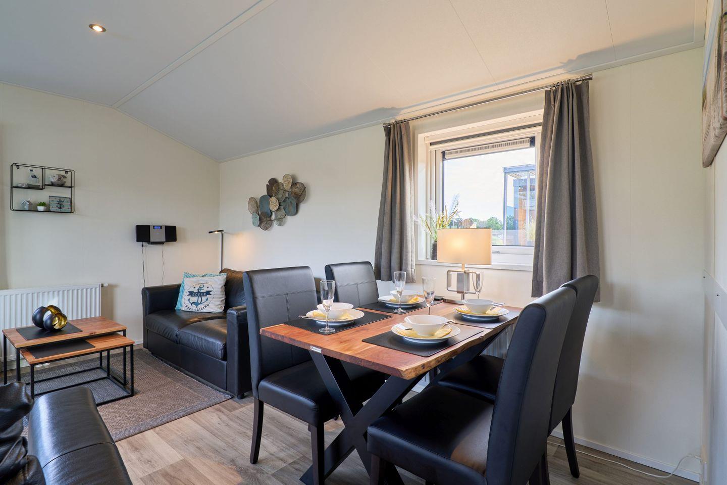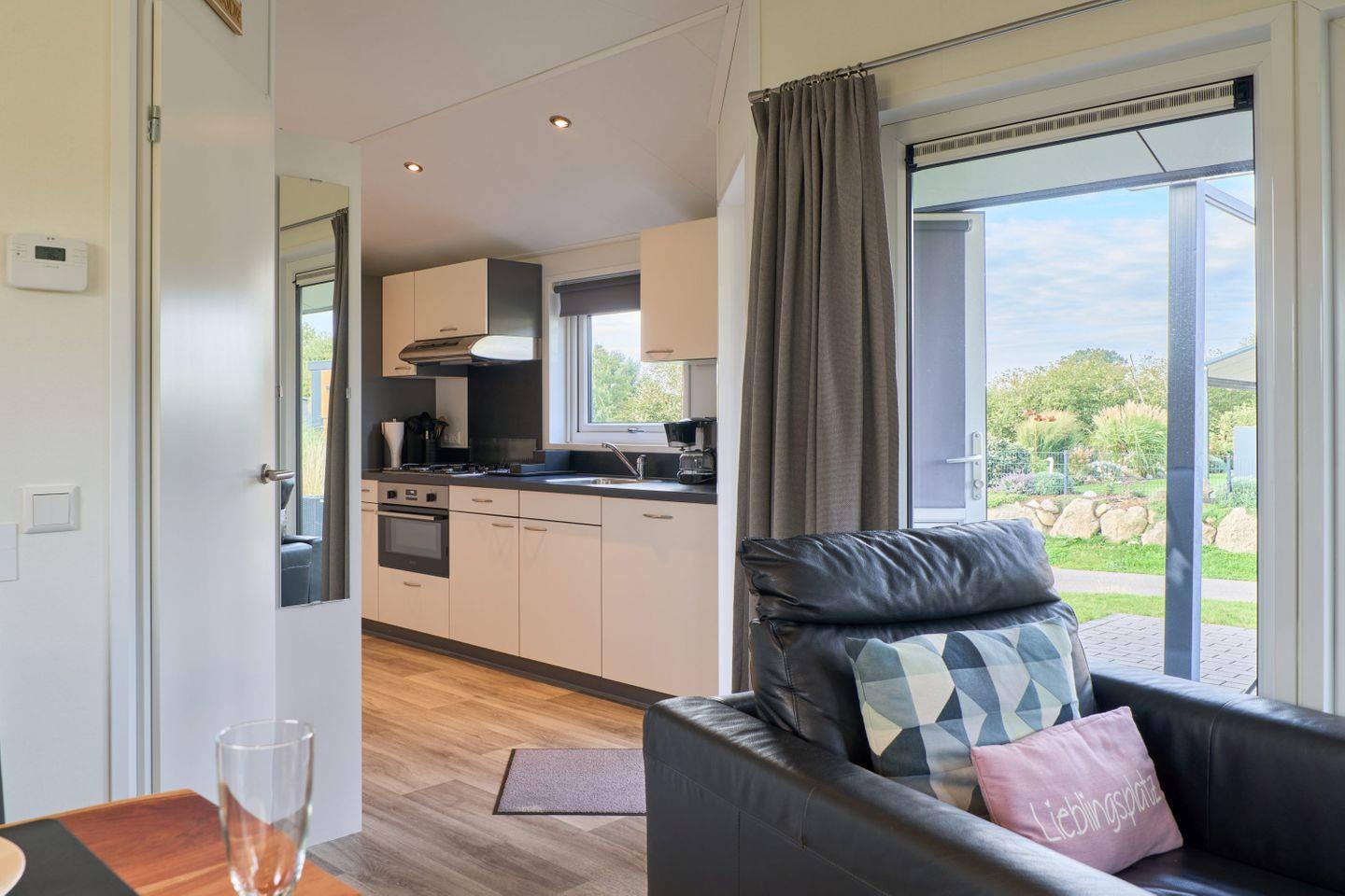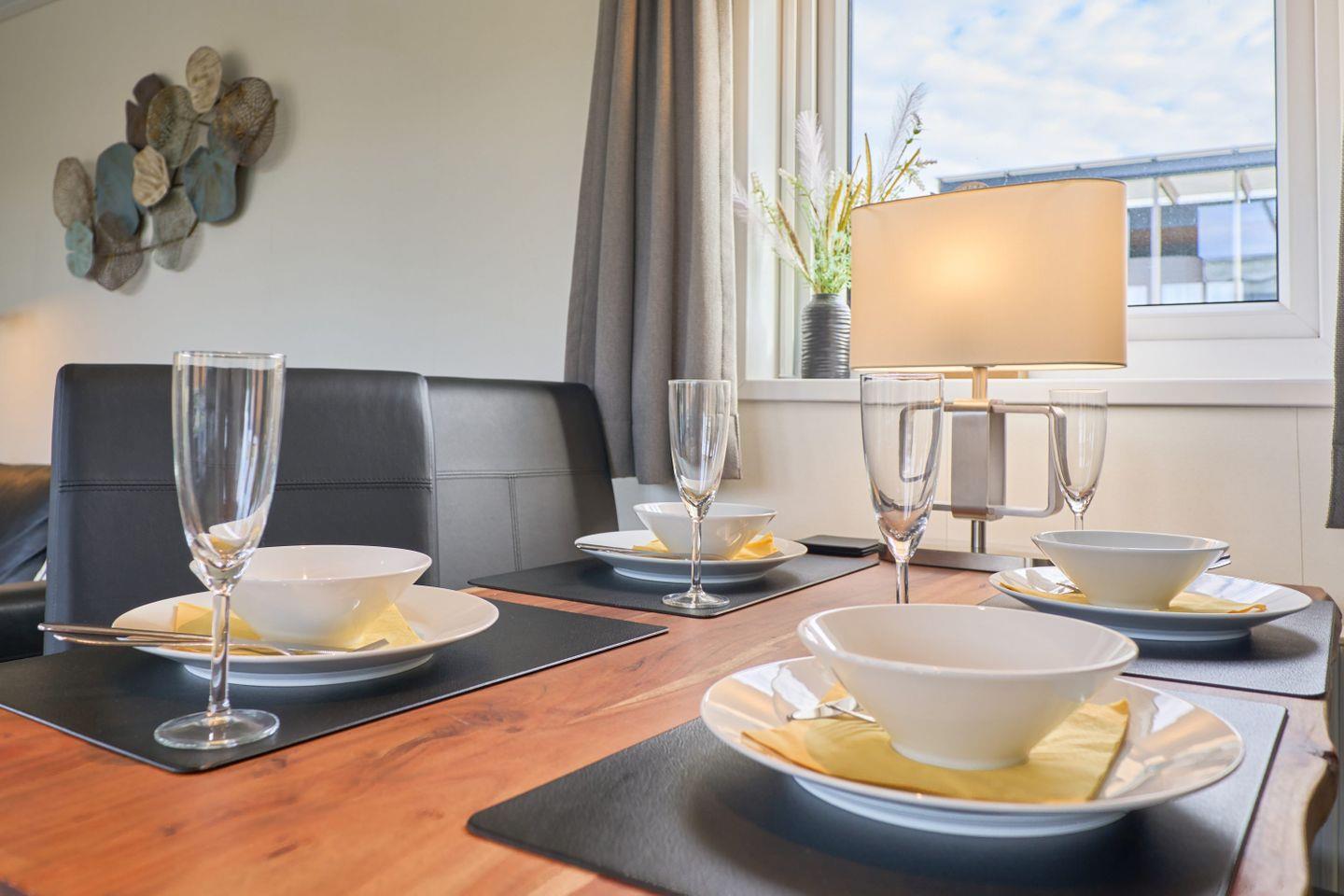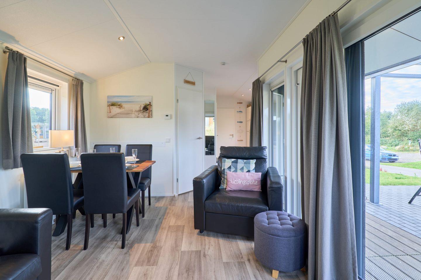 Das Chalet verfügt über drei Zimmer, darunter zwei separate Schlafzimmer mit insgesamt vier Schlafmöglichkeiten. Zwei der Schlafplätze sind speziell für Kinder vorgesehen und bieten Familien mit Kindern ausgezeichneten Komfort. Ein helles Wohnzimmer mit Sofaecke lädt zum Entspannen ein. Der offene Küchenbereich grenzt direkt an den Essbereich und das Wohnzimmer an und ist mit zahlreichen Annehmlichkeiten ausgestattet. Für die gemeinsame Zubereitung von Mahlzeiten stehen Ihnen ein Herd, Backofen, Kühlschrank mit Gefrierfach, Geschirrspüler, Kaffeemaschine, Wasserkocher, Toaster sowie sämtliche Küchenutensilien, Geschirr und Besteck zur Verfügung. Ebenso sind Geschirrhandtücher vorhanden. Ein moderner Esstisch bietet genug Platz für alle Gäste.