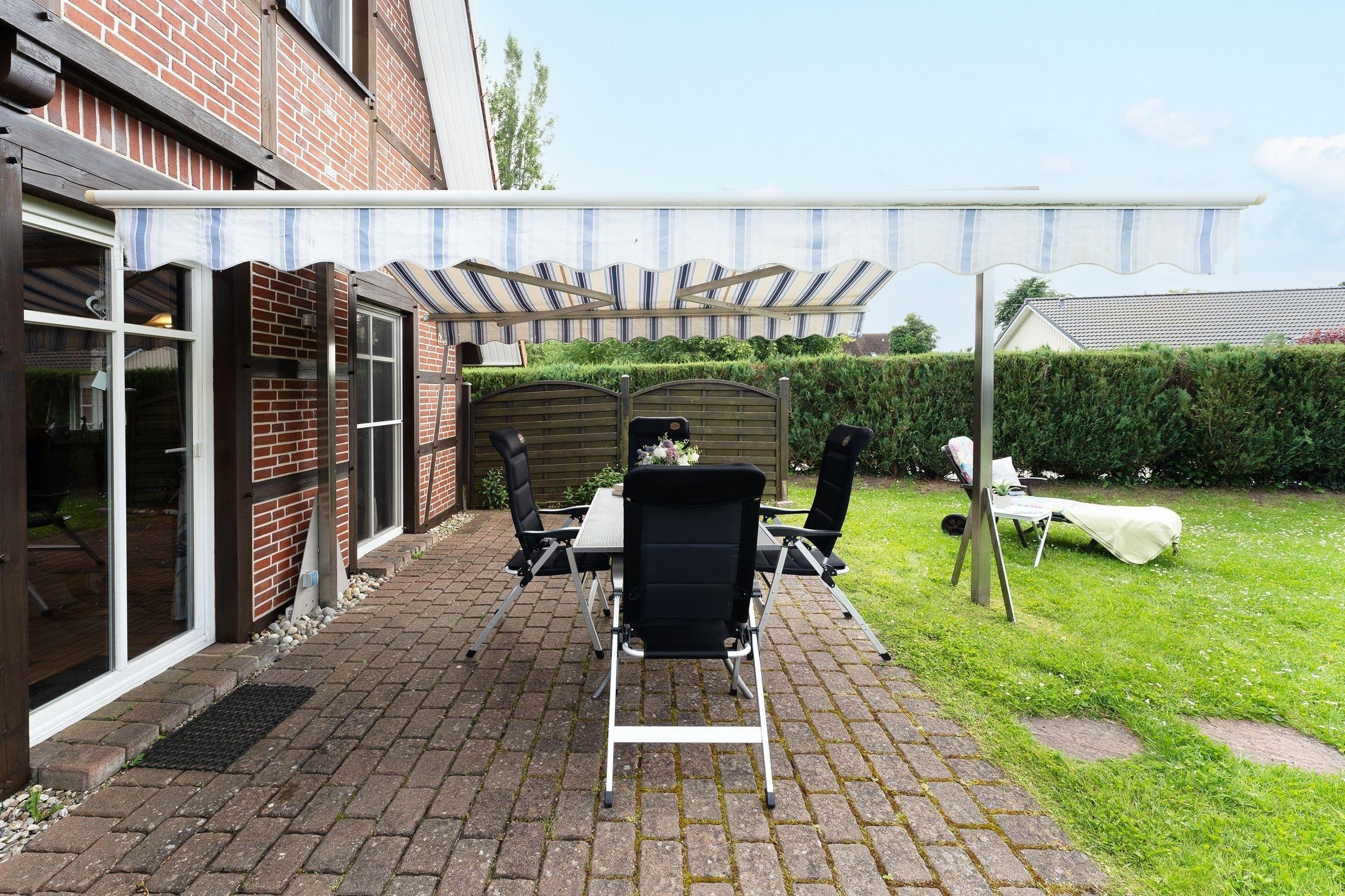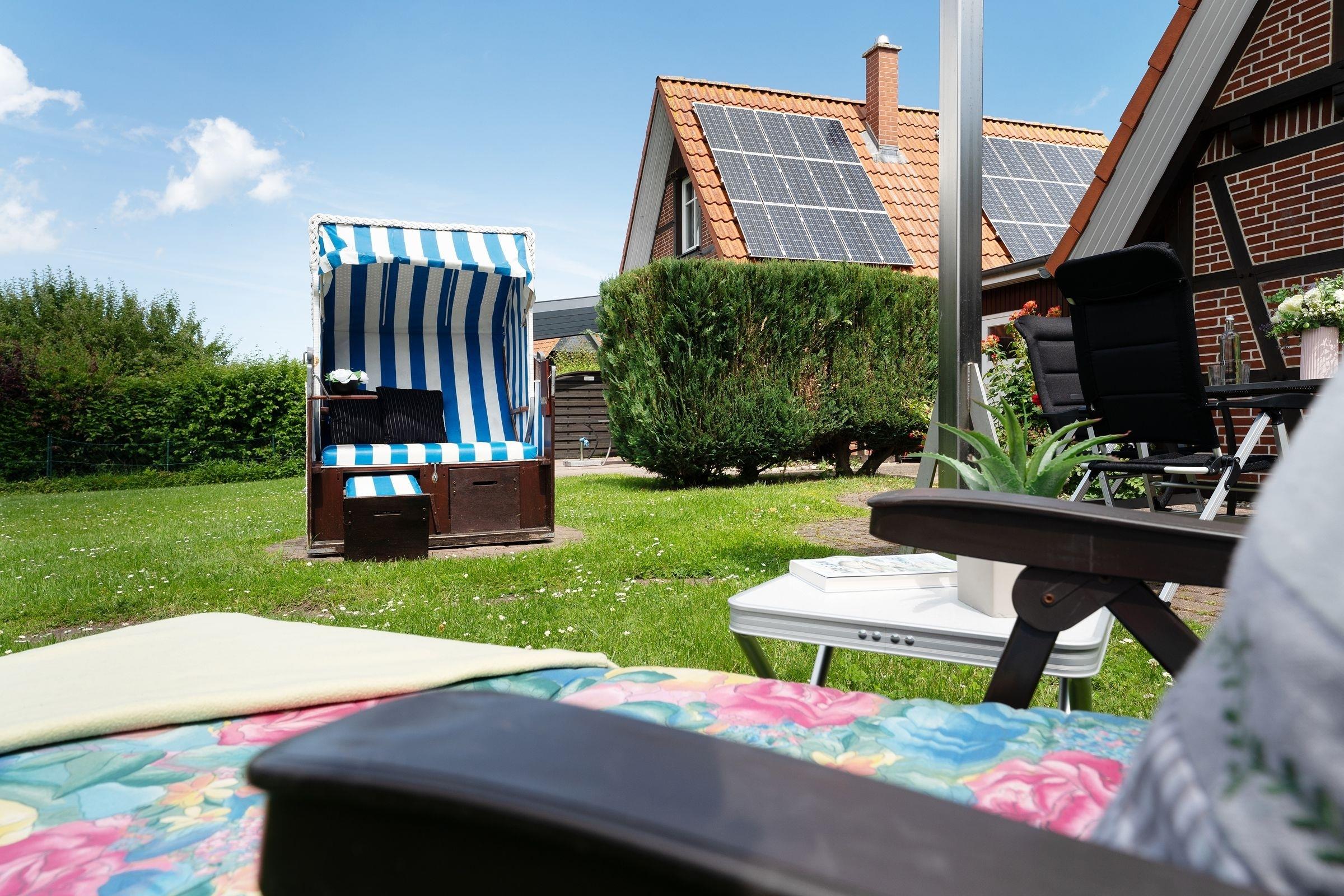Dieses traumhafte Haus mit seiner geschmackvoll abgestimmten Einrichtung wird Ihnen Ihren Urlaub versüßen. Ein ebenerdiges Wohnzimmer mit direktem Zugang nach draußen, ein gusseiserner Ofen, Jalousien, ein großer Flat-TV, eine offene und gut ausgestattete Küche, zwei Schlafzimmer im Obergeschoss - hier finden Sie alles, was das Urlauberherz begehrt. Nehmen Sie im Garten Platz im Strandkorb oder auf der Sonnenliege und genießen Sie Ihre Auszeit. Sollte es die Sonne mal zu gut mit Ihnen meinen, sitzen Sie gemütlich auf der überdachten Terrasse. Für lauschige Abende steht Ihnen ein Grill zur Verfügung.