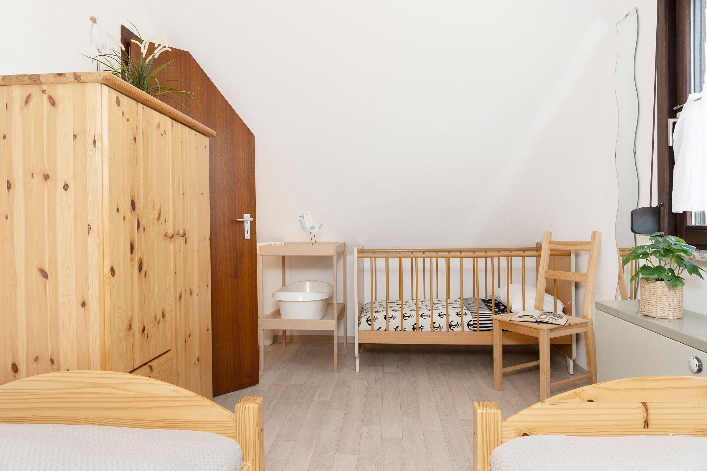 Schlafzimmer 2: 2 Einzelbetten (je 2x 90x200 cm), Babybett, Kleiderschrank