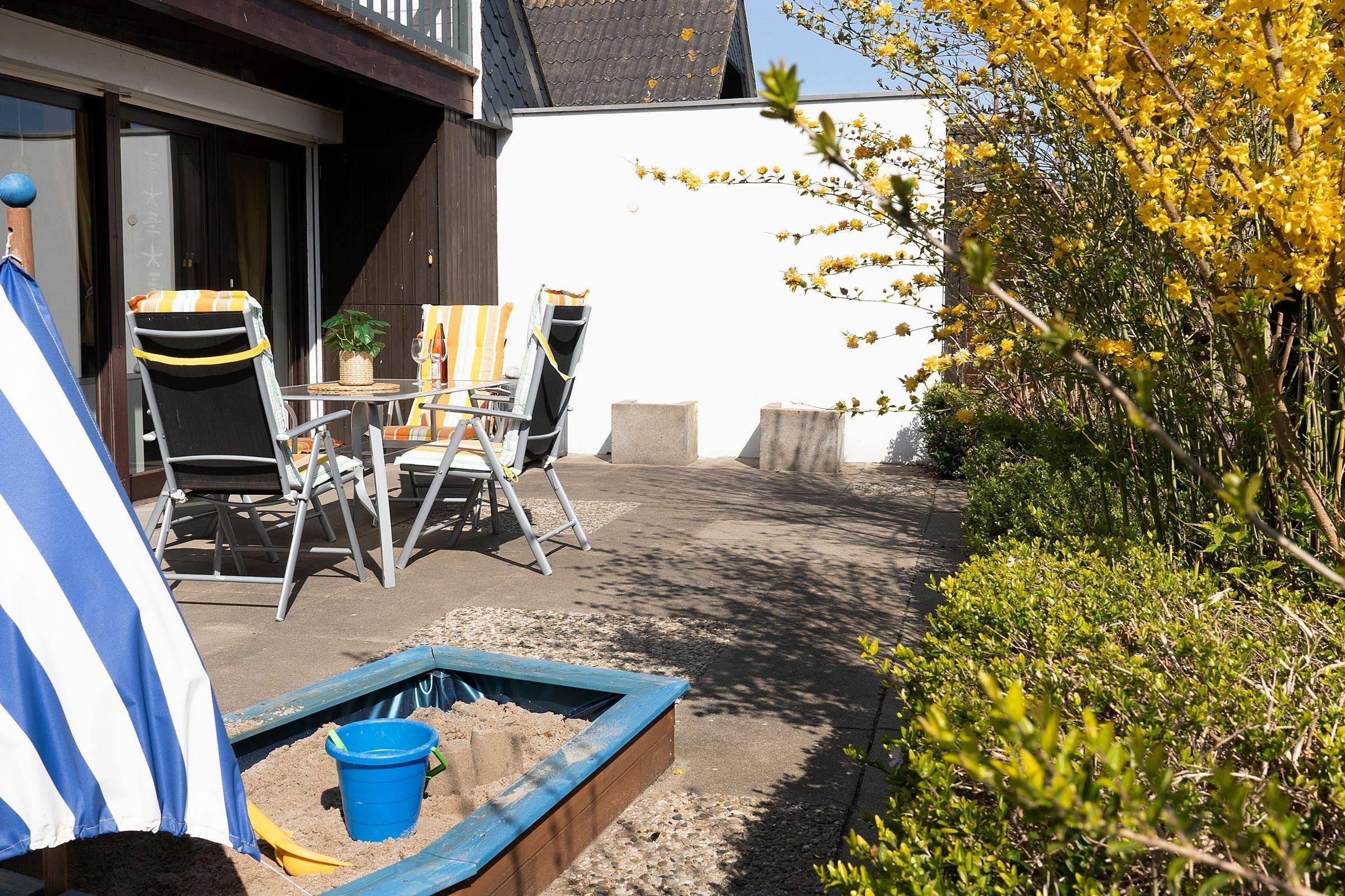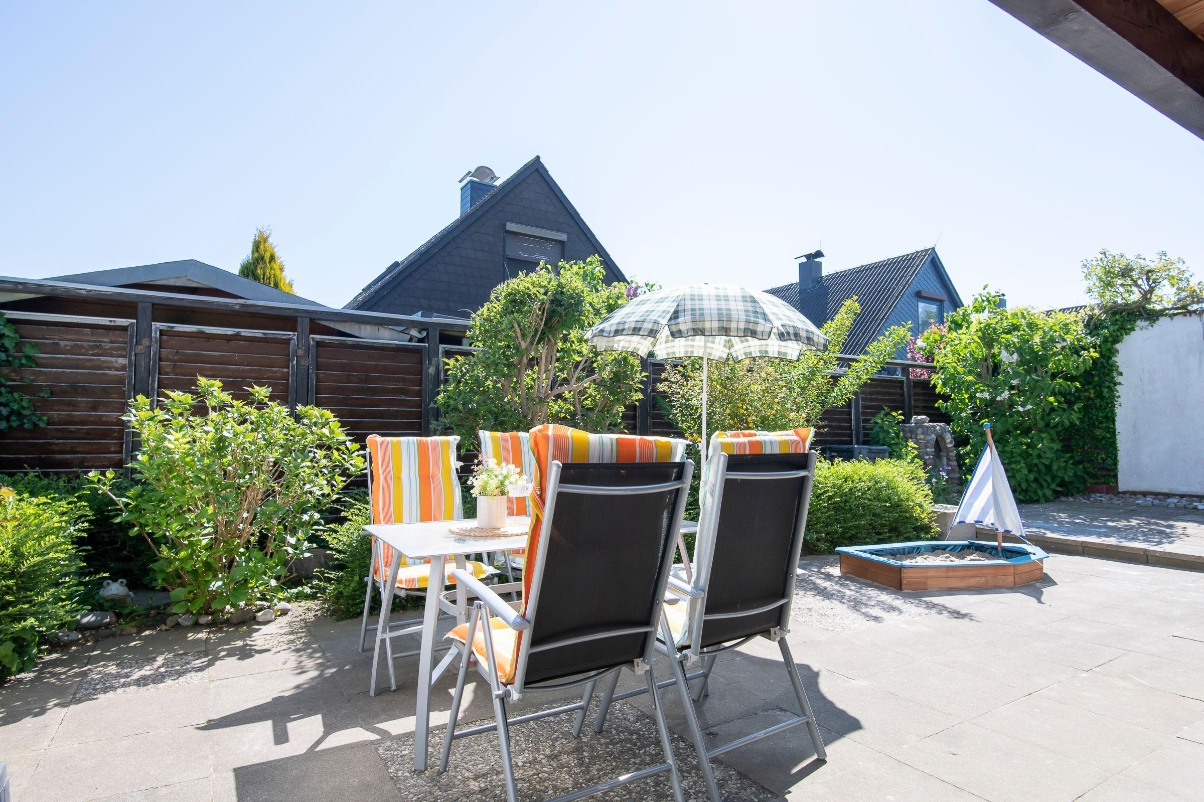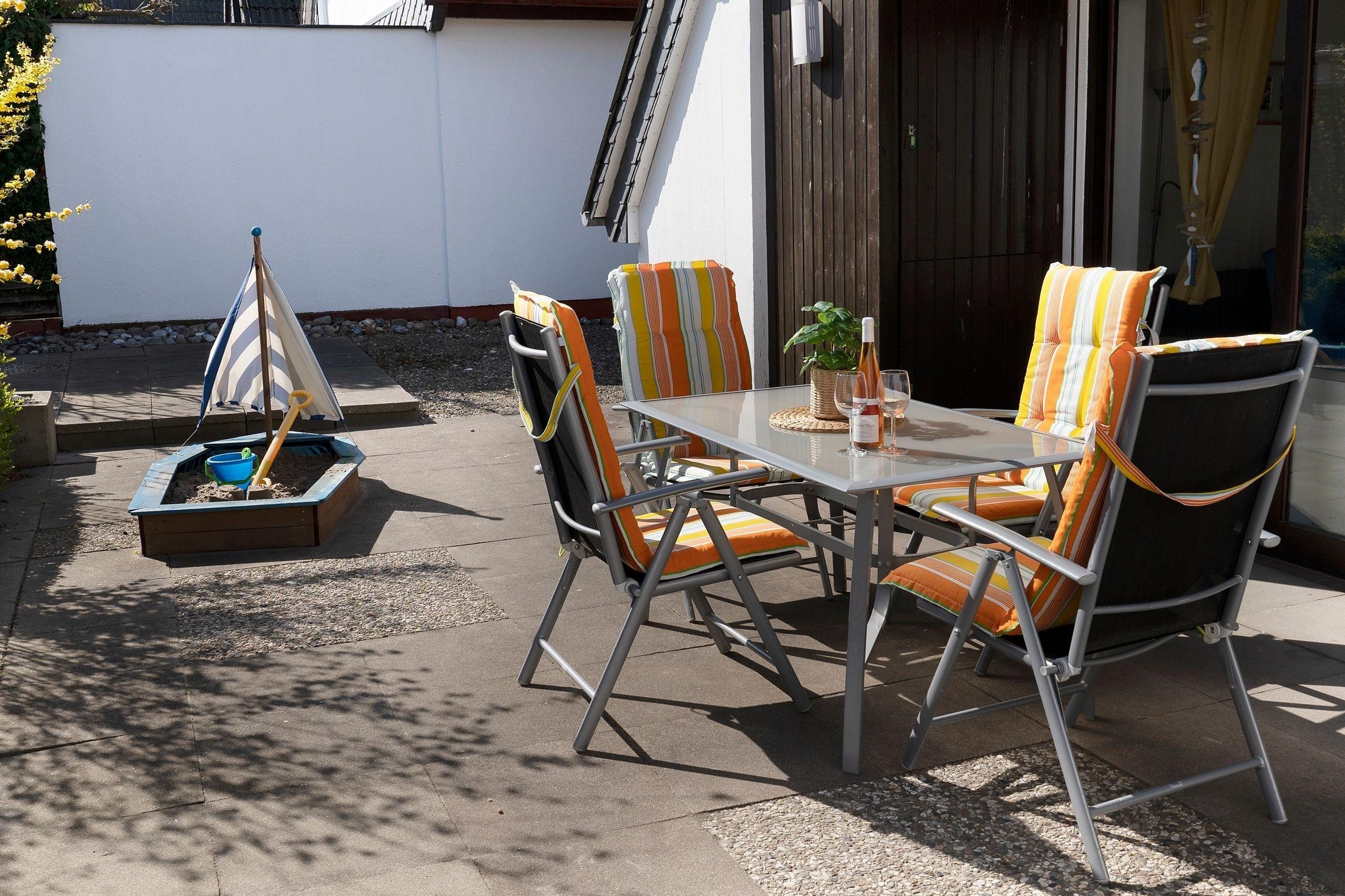 Im Obergeschoss befinden sich zwei durch den Flur getrennte Schlafzimmer. Eines mit Doppelbett (2x 100x200 cm), Babyreisebett und kleinem Balkon, das andere mit zwei Einzelbetten (je 2x 90x200 cm), einem Babygitterbett und Wickeltisch. Auf dem sehr schön eingewachsenen Grundstück mit Terrasse in Südlage haben Sie ausreichend Platz um sich zu entspannen, die Ostseeluft zu genießen und Sonne zu tanken. Hier stehen Ihnen Gartenmöbel, Liegen und ein Sonnenschirm zur Verfügung. Der Garten ist komplett eingezäunt und nicht einsehbar. Bei der Einrichtung dieses Ferienhauses wurde besonders an Kinder gedacht. So verfügt das Wohnzimmer über eine kleine Spielecke und die Treppe ist mit einem Schutzgitter abgesichert. In der vollständig ausgestatteten Küche finden Sie auch Kindergeschirr- und besteck vor. Im Garten befindet sich ein Sandkasten zum Austoben. Neben jeder Menge Spielzeug und Spielen steht Ihnen ein kleiner Bollerwagen, eine Babybadewanne, ein WC-Sitz und vieles mehr für einen familienfreundlichen Urlaub zur Verfügung. Worauf warten Sie? Genießen Sie hier mit Ihrer Familie die schönste Zeit im Jahr: Urlaub pur!
