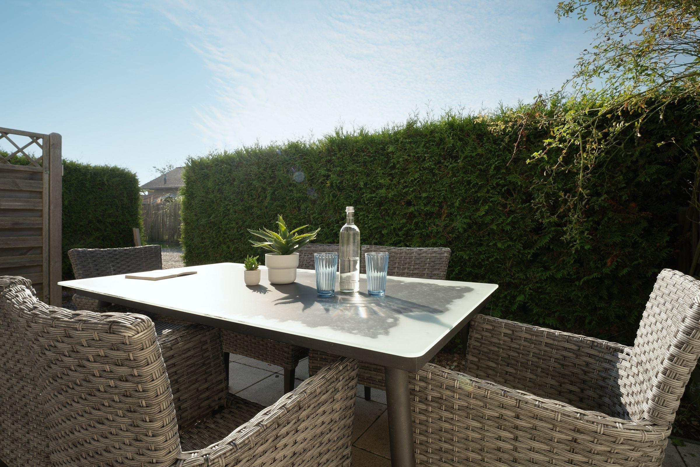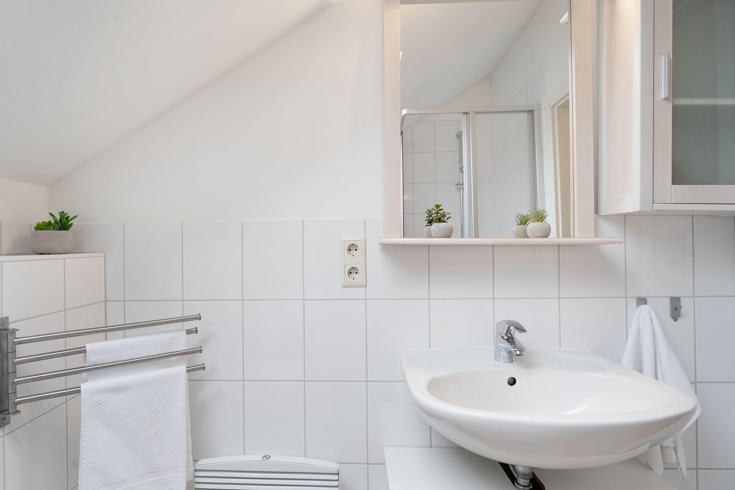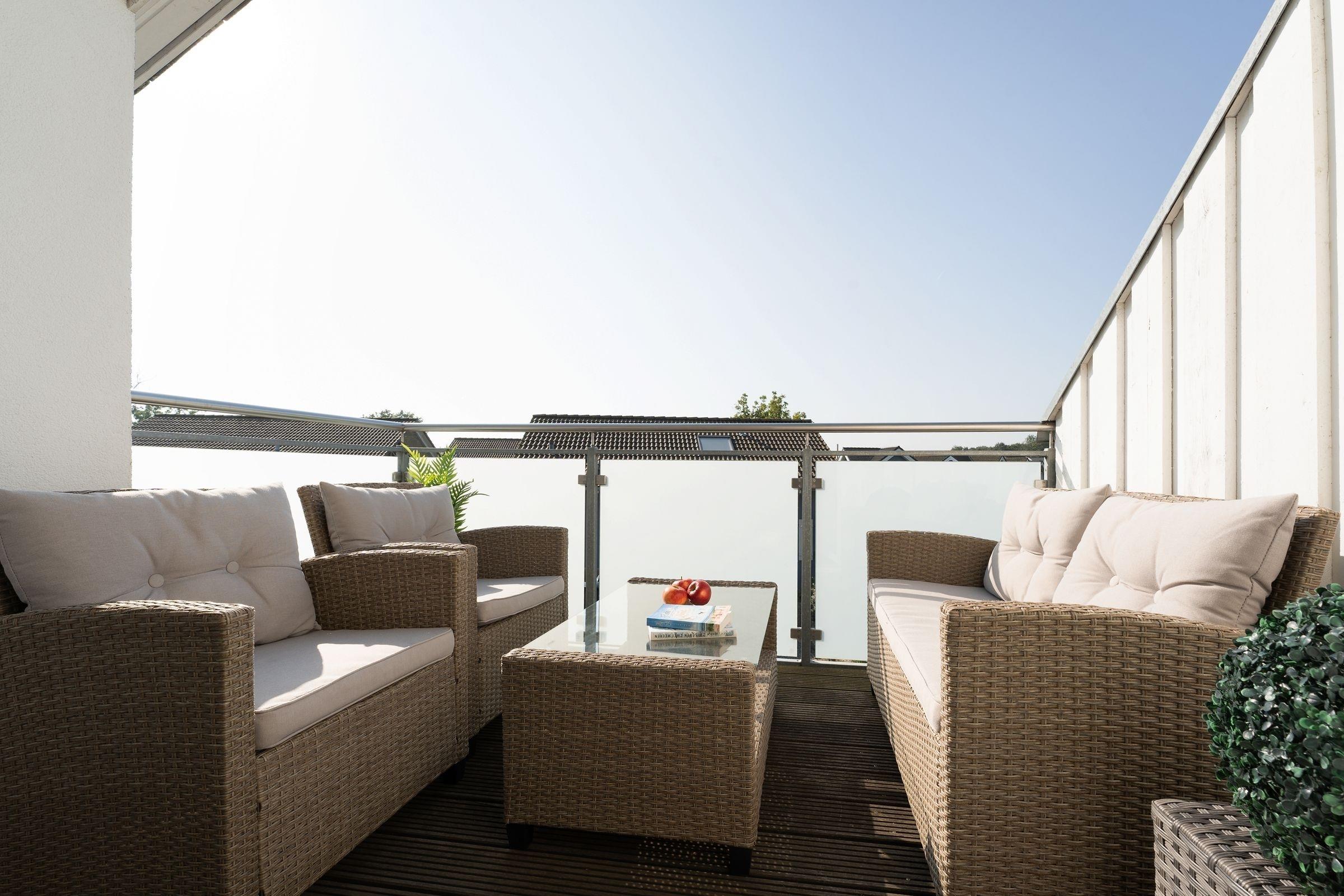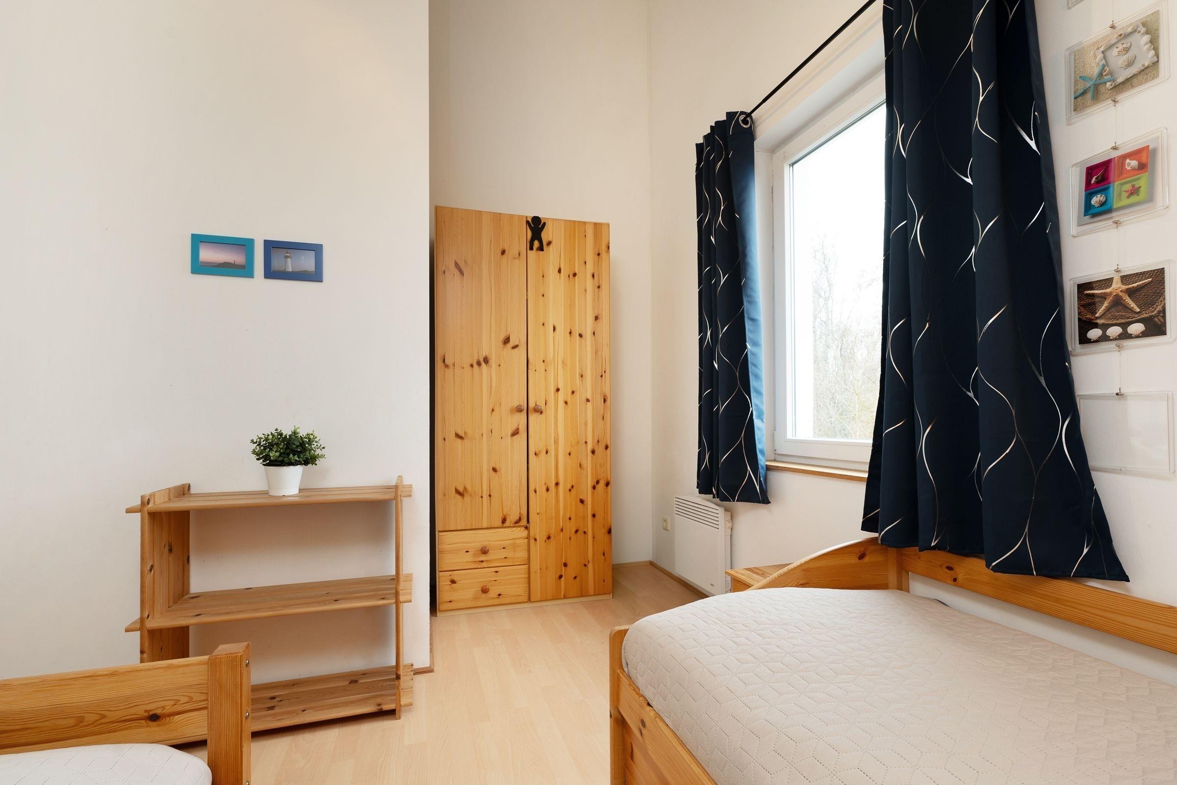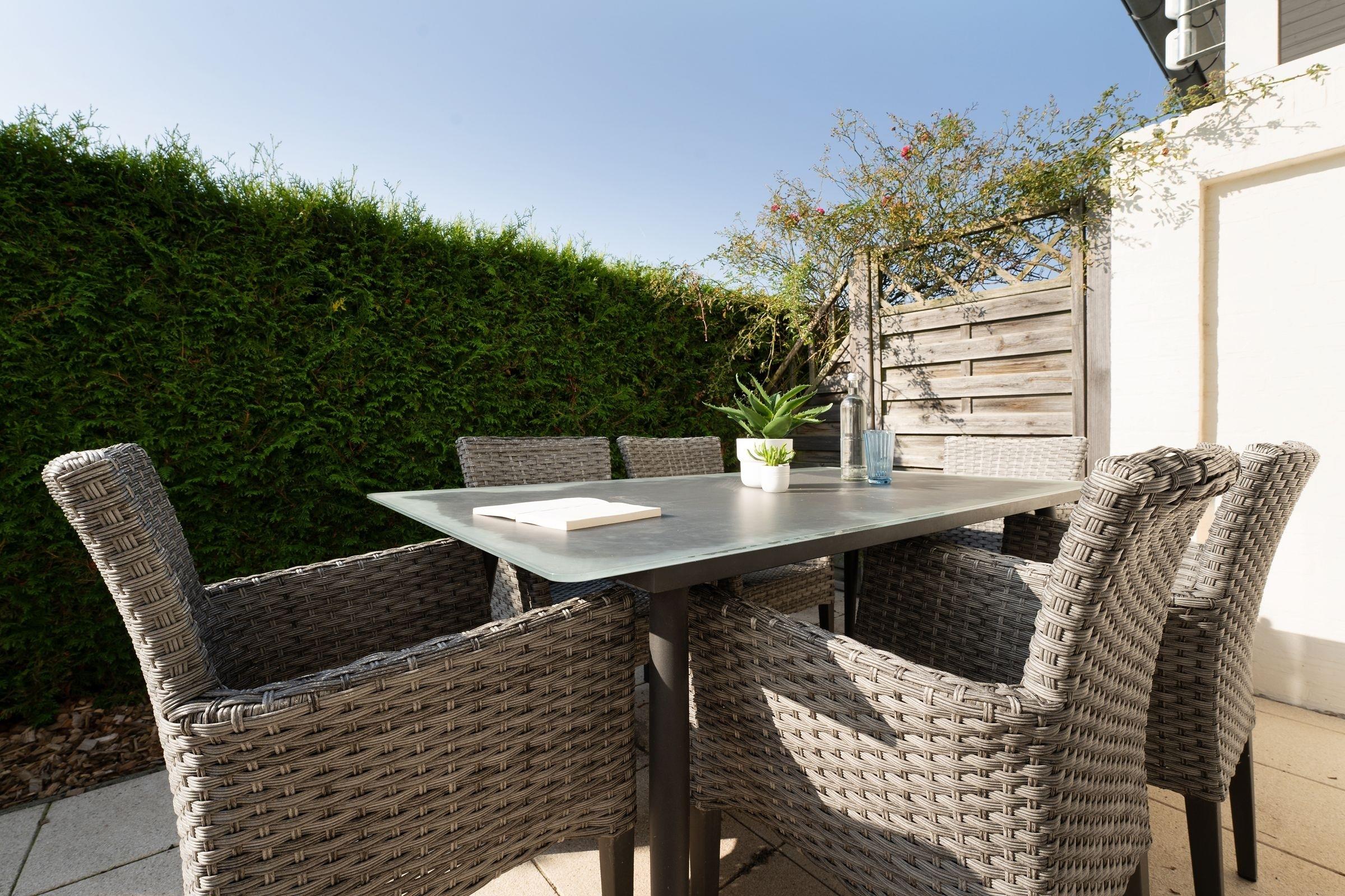 Der großzügige Wohn- und Essbereich mit Kaminofen und offener Küche wird Sie begeistern. Hier finden Sie alles, um in gemütlicher Atmosphäre wertvolle Familienzeit zu genießen. Die Süd-Terrasse trägt die Meeresbrise hinein, der kleine Garten hinter dem Haus mit Grillecke und Sonnenliegen rundet den Strandtag ab. Das Sofa lässt sich abends für 2 Gäste in eine Schlafstätte (ca. 150x200 cm) verwandeln. Im Obergeschoss finden Sie ein Schlafzimmer mit Doppelbett (2x 90x200cm) und Zutritt auf den großen, möblierten Südbalkon sowie ein Schlafzimmer mit Kojen-Bett und Einzelbett (je 90x200 cm). Ebenso ein Duschbad mit Waschmaschine. Das Gäste-WC liegt im Erdgeschoss.