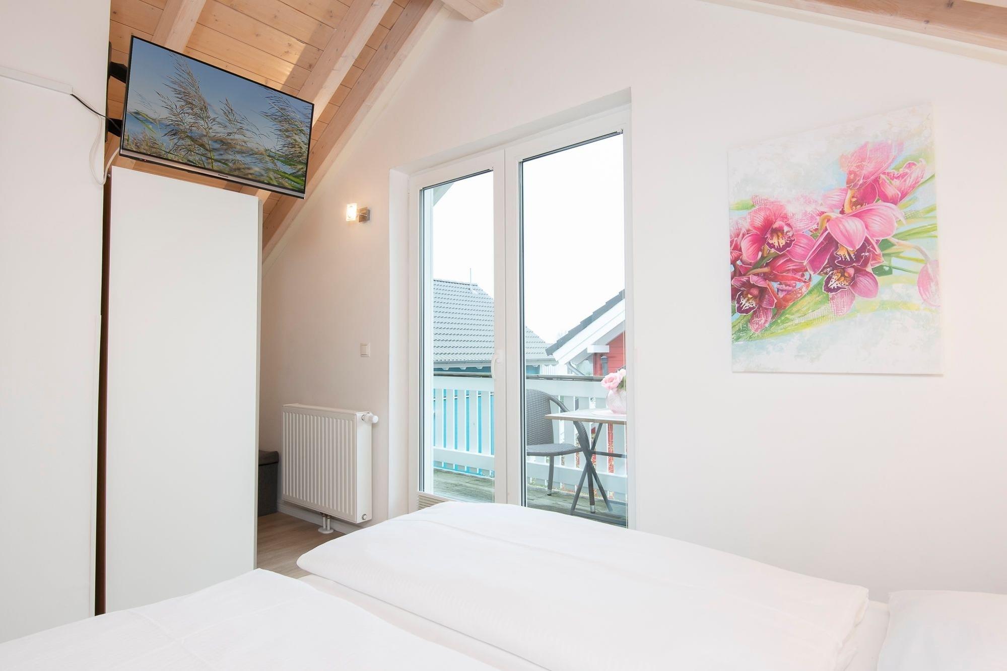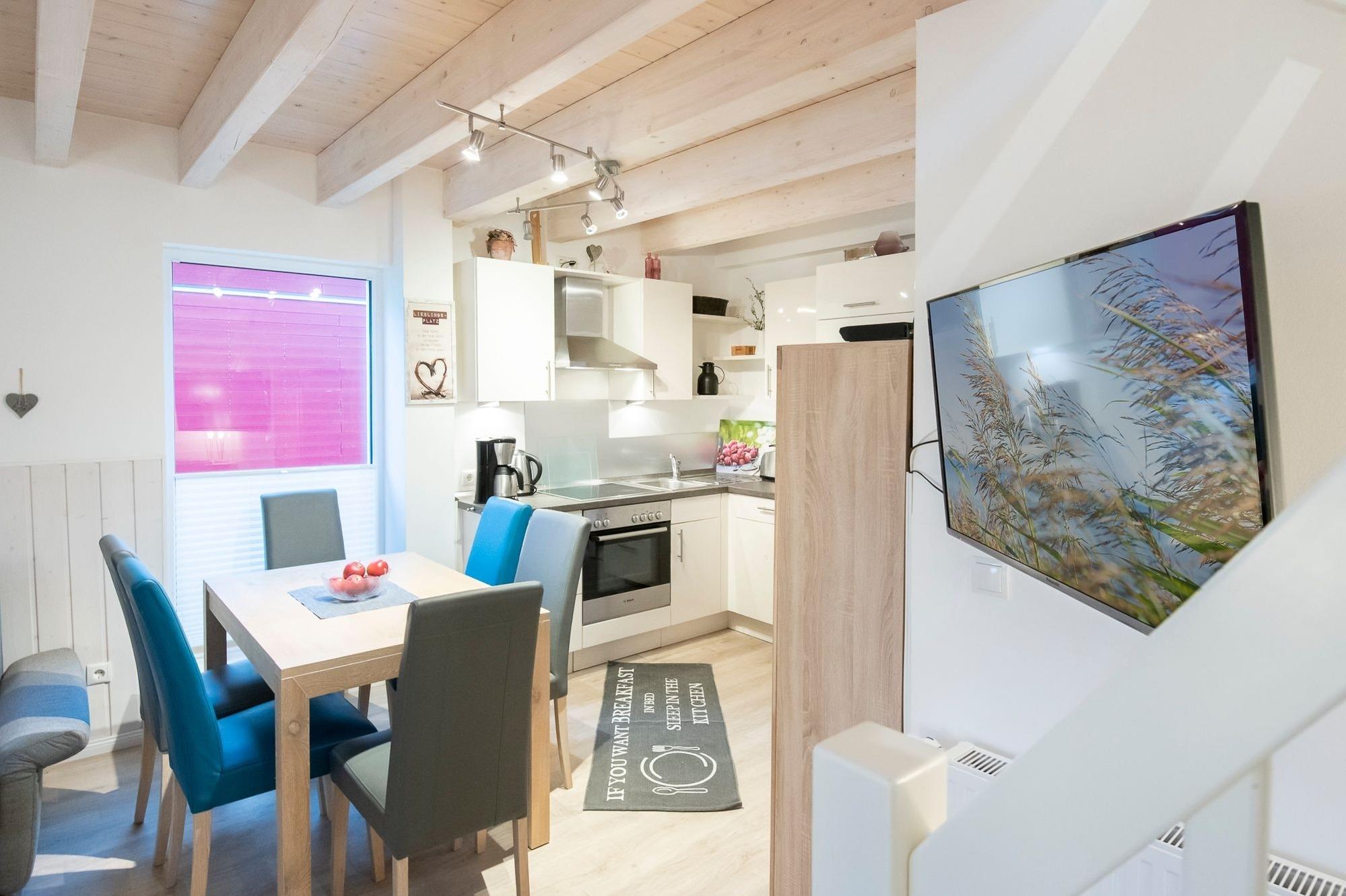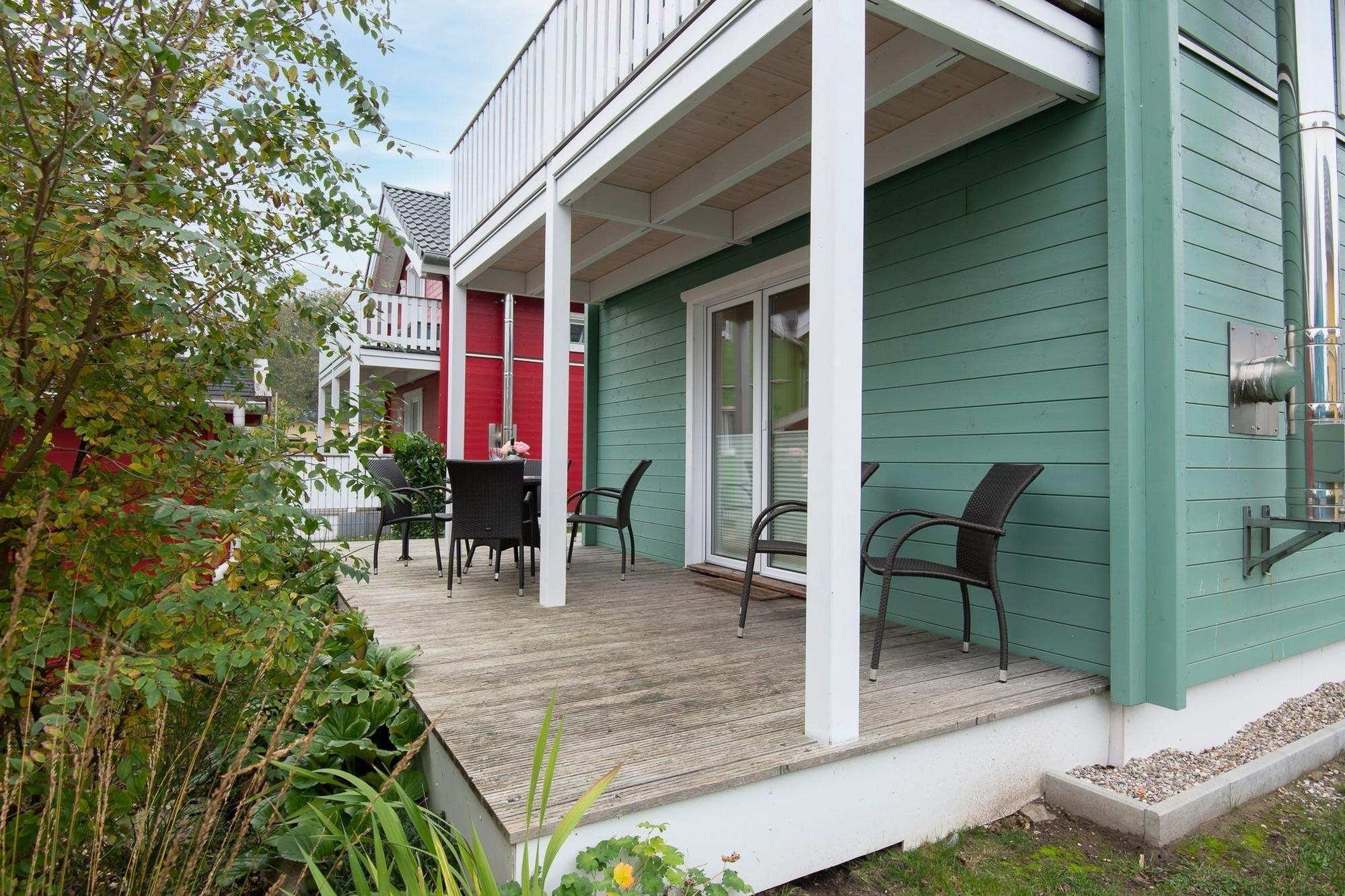 Im Erdgeschoss empfängt Sie ein großzügiger Wohn-/ Essbereich mit gemütlicher Schlafcouch, 2 Sessel und perfekt integrierter Küche, die keine Wünsche offenlässt. Ihre frisch geangelten Fische können Sie bequem im extra großen Gefrierfach lagern. Kreieren Sie köstliche Gerichte mit regionalen Zutaten und genießen Sie entspannte Abende auf der großen Holzterrasse oder vor dem Kamin mit wärmendem Feuer. Erholsame Wärme bietet zudem die Sauna, die für Entspannung der Muskulatur sorgt. In dieser Etage befindet sich außerdem das moderne Badezimmer mit Dusche. Das 1. Obergeschoss bietet Ihnen 2 komfortable Schlafzimmer für erholsame Nächte. Eins ausgestattet mit einem Doppelbett, das Andere mit 2 Einzelbetten. Das hell geflieste und moderne Gäste-WC mit Fenster vervollständigt diese Etage. Vom gemütlichen Südbalkon aus können Sie sogar zeitweise einen Blick auf die Ostsee erhaschen. Der Glasfaser WLAN-Anschluss ist selbstverständlich inklusive.